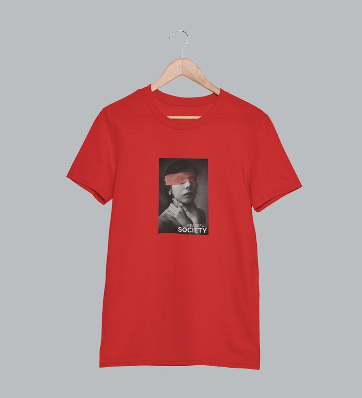 Pacifist Society, Urban Legend Series: Red Men's Oversized Round Neck T-Shirt with Front Print