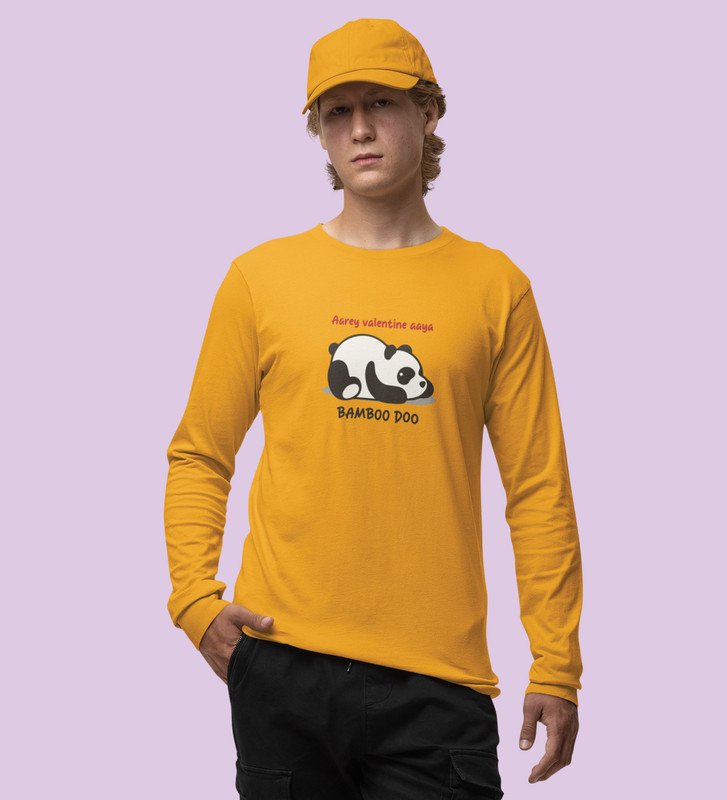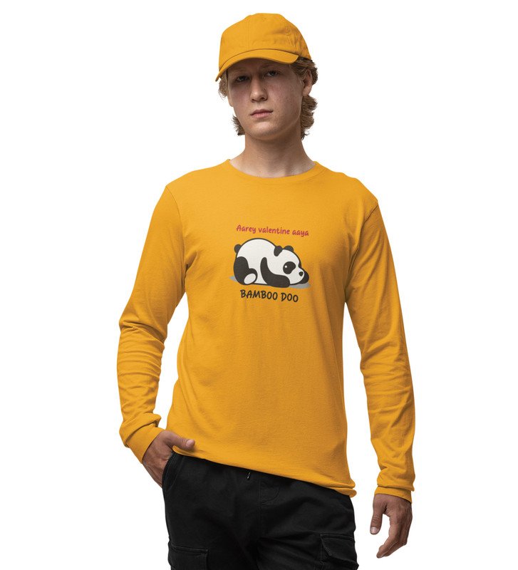 Panda Wants Bamboo: Attractive Printed (yellow) Full Sleeve T-Shirt For Singles