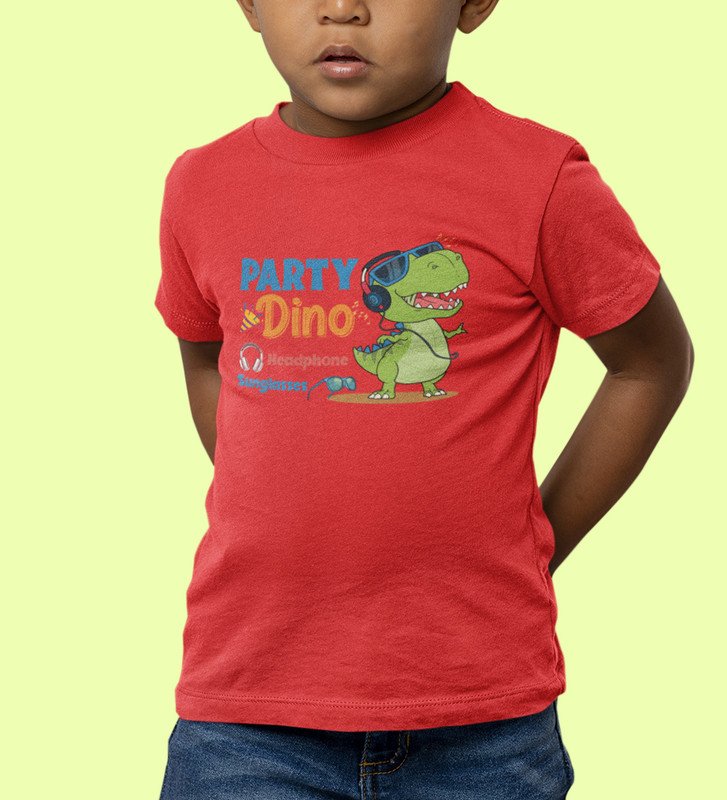 Party Animal Dino,Boys Cotton Printed T-Shirt