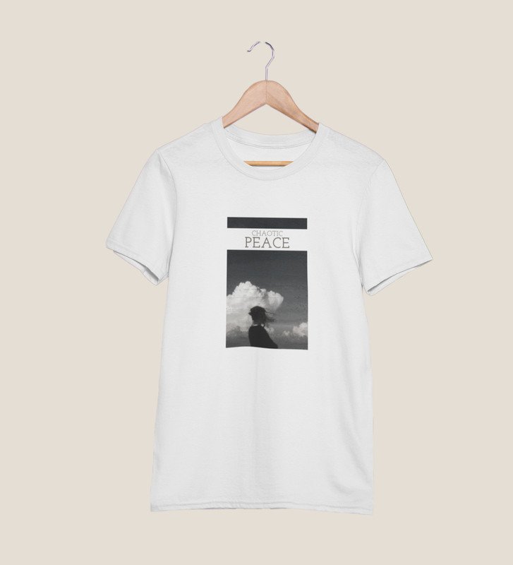 Peaceful Chaos, White Cityscape Chronicles: Front Printed Round Neck Tee - Men's Edition