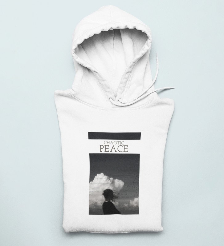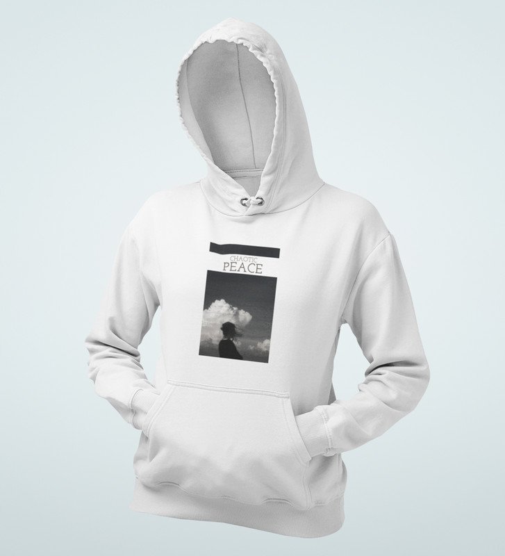 Peaceful Chaos,White Cityscape Chronicles: Front Printed Round Neck Hoodie - Men's Edition
