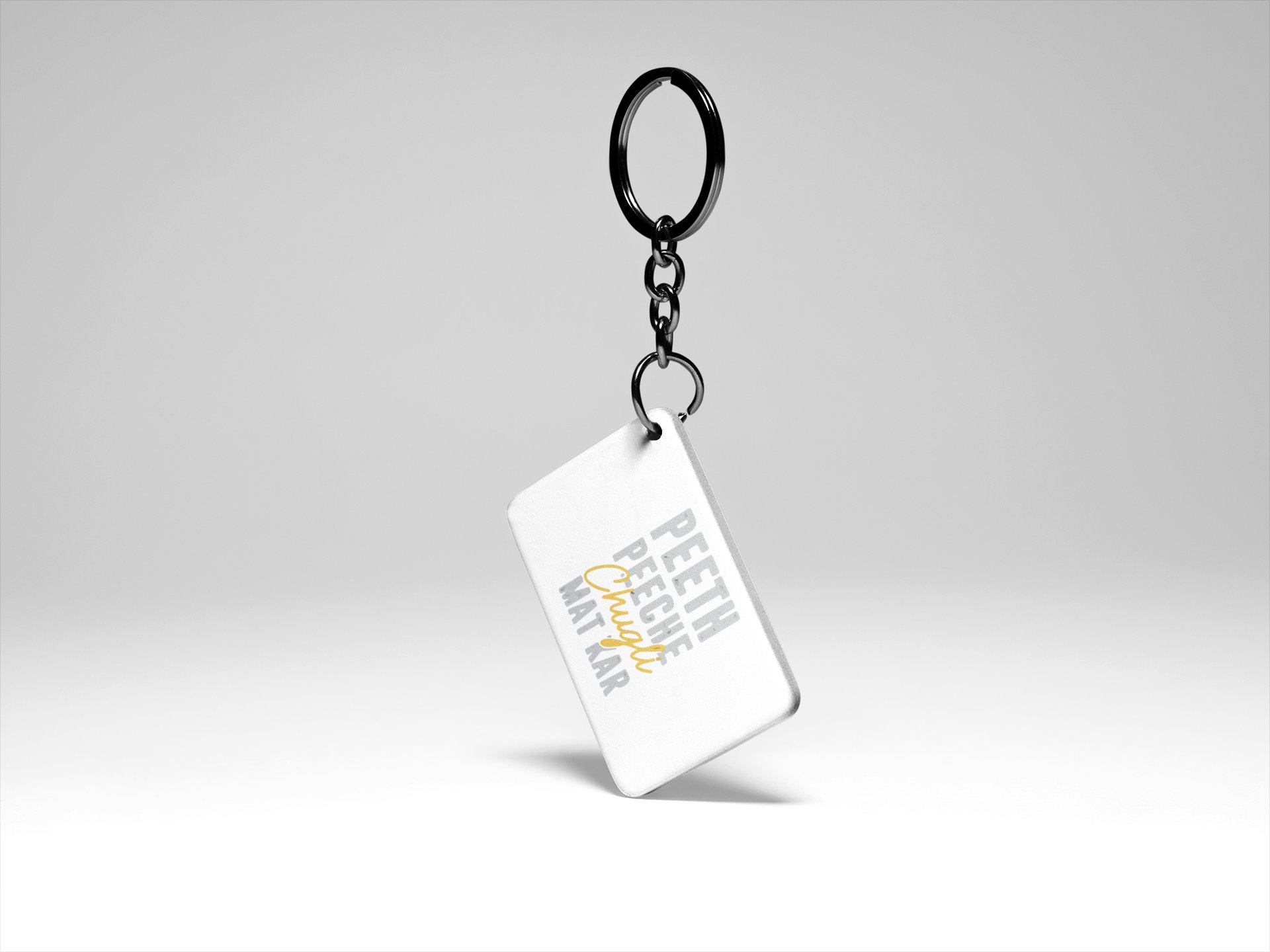 Peeth Peeche Chugli Mat Kar - acryllic printed white keychains/ keyrings for bollywood lover people(Pack Of 2)