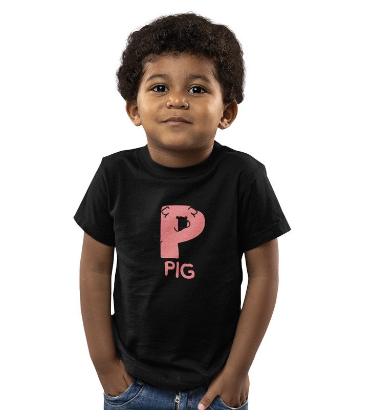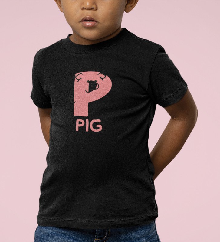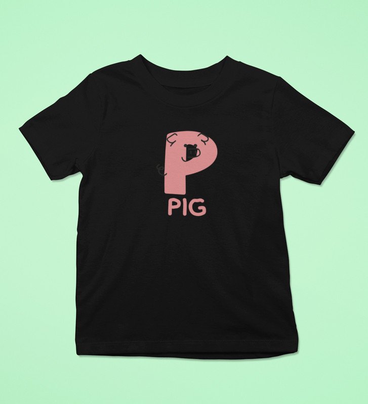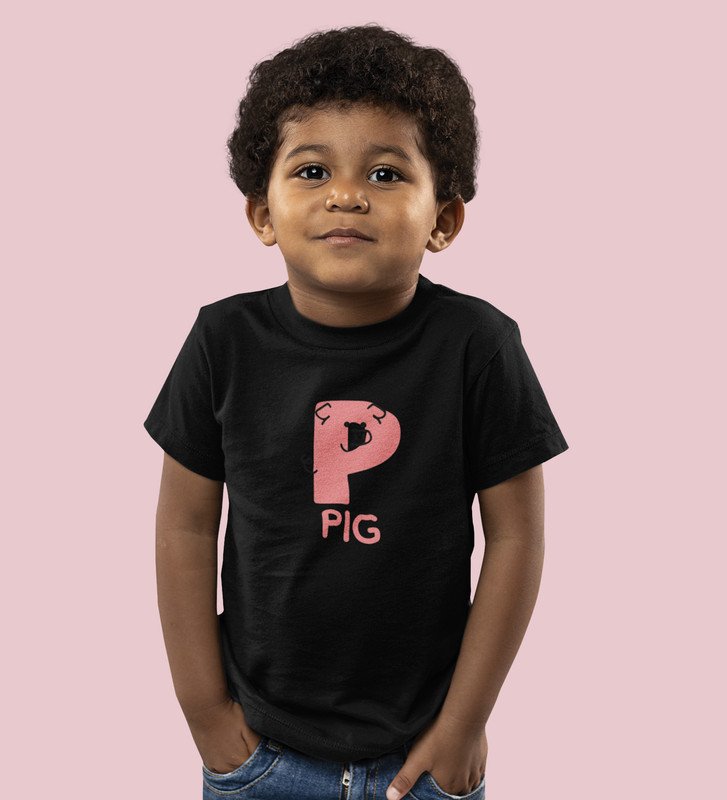 Pepper Pig, Boys Cotton Text Print Tshirt (Black)