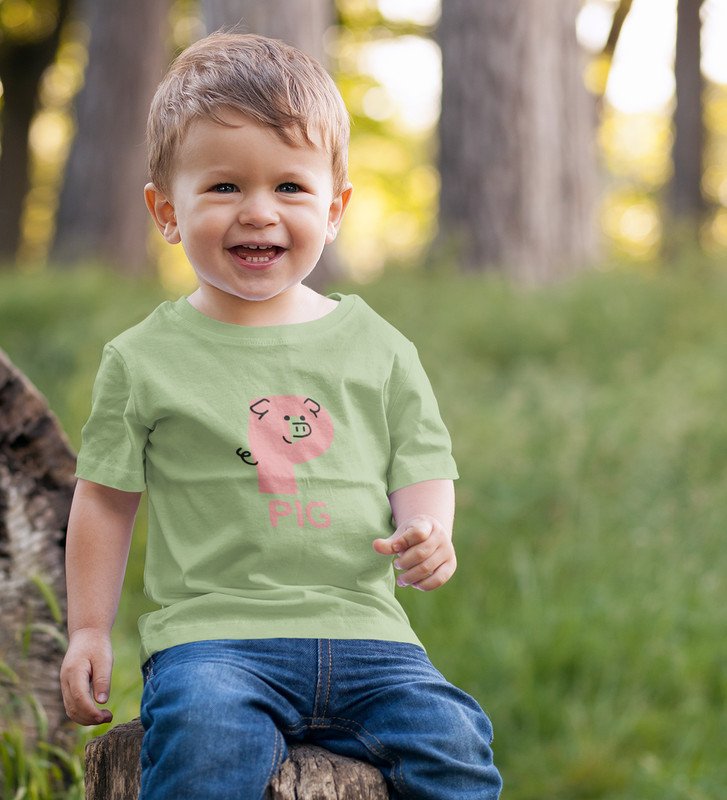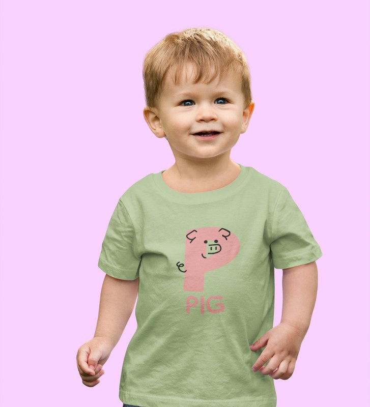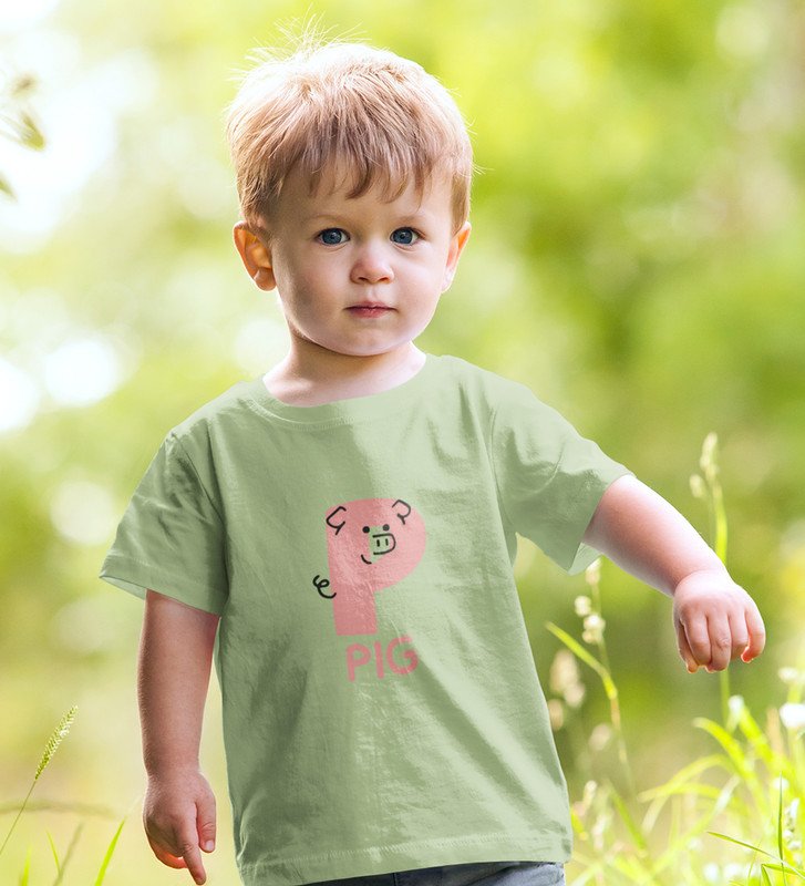 Pepper Pig, Boys Cotton Text Print tshirt (olive)