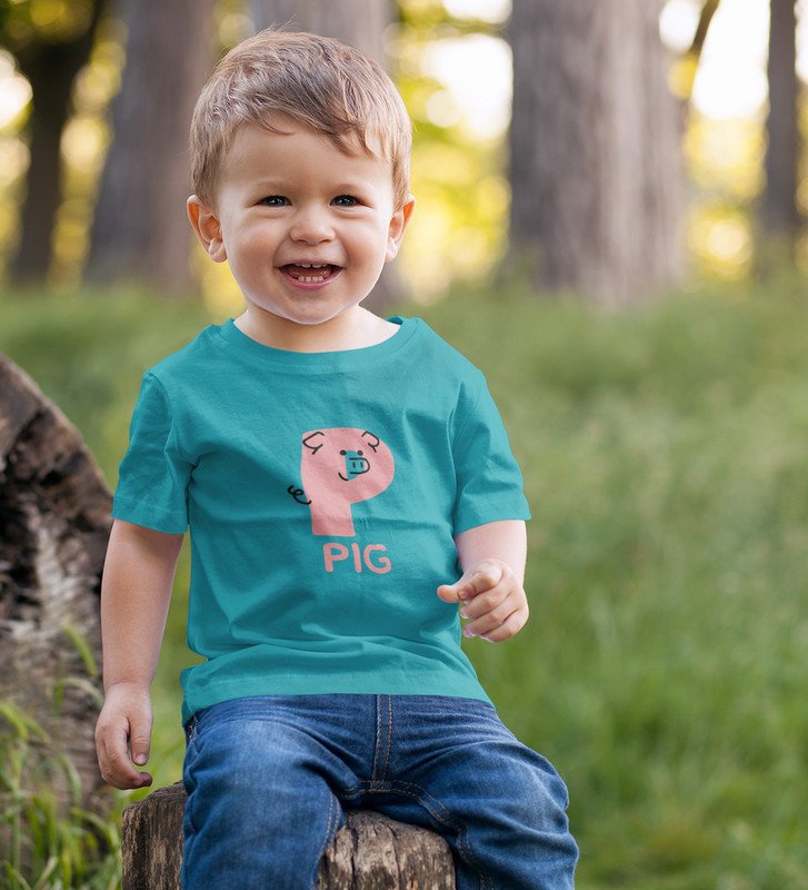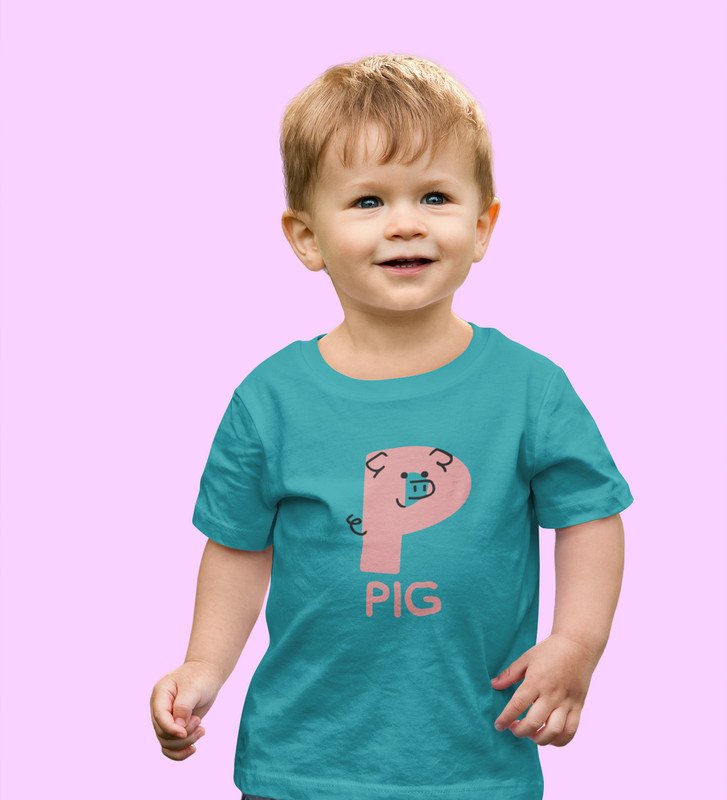 Pepper Pig, Boys Cotton Text Print tshirt (teal)