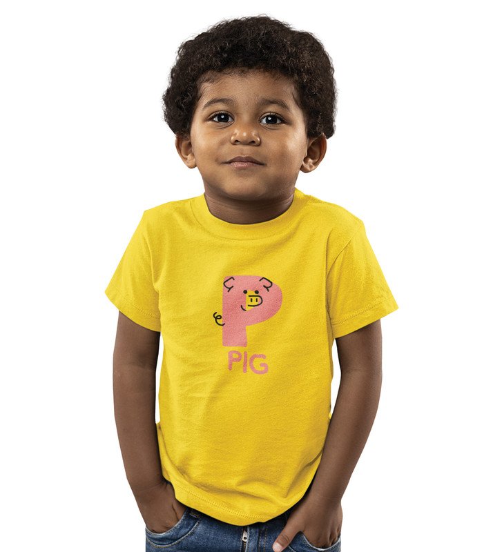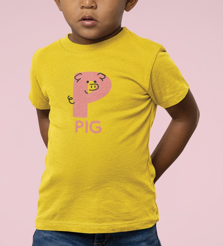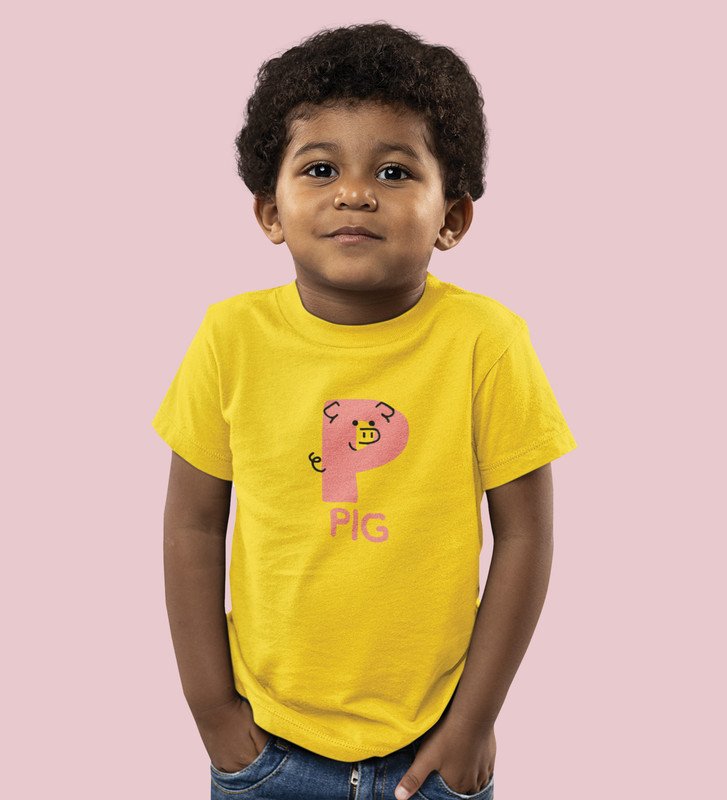 Pepper Pig, Boys Cotton Text Print Tshirt (Yellow)