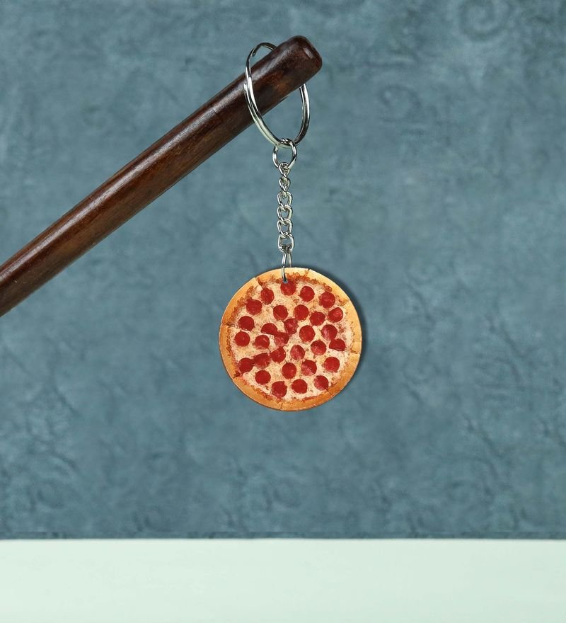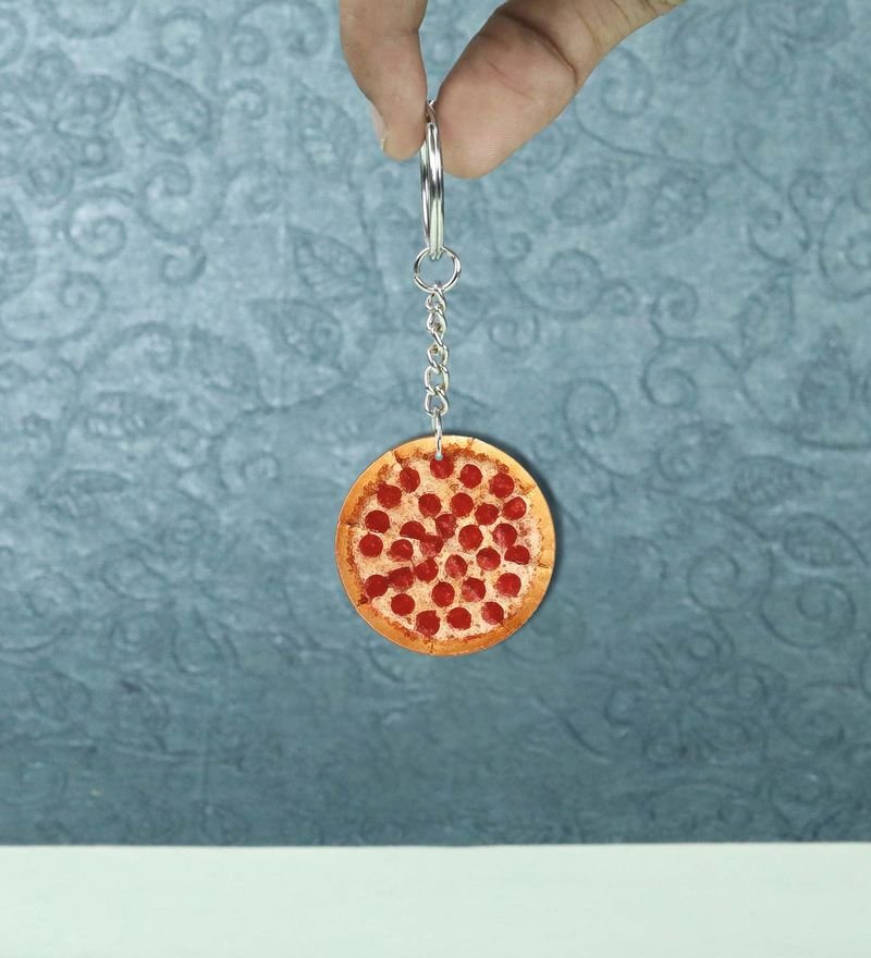 Pepperoni Art Design Printed Round Keychain Pack of 2