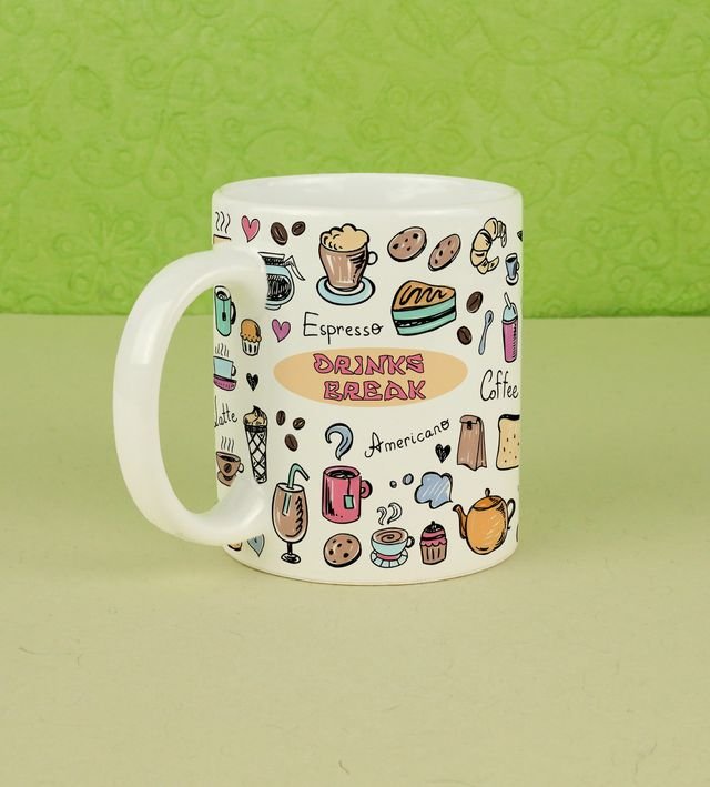 Perfect Coffee and Dessert Break Doodle Printed Coffee Mug 250ml