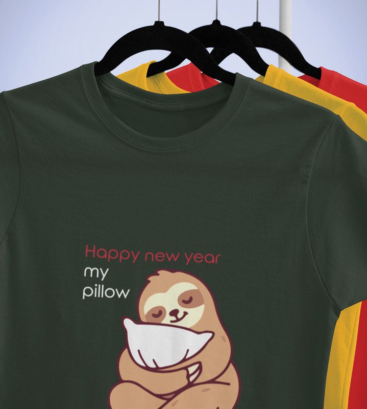 Pillow And New Year Green Graphic Printed T-shirt For Mens Boys