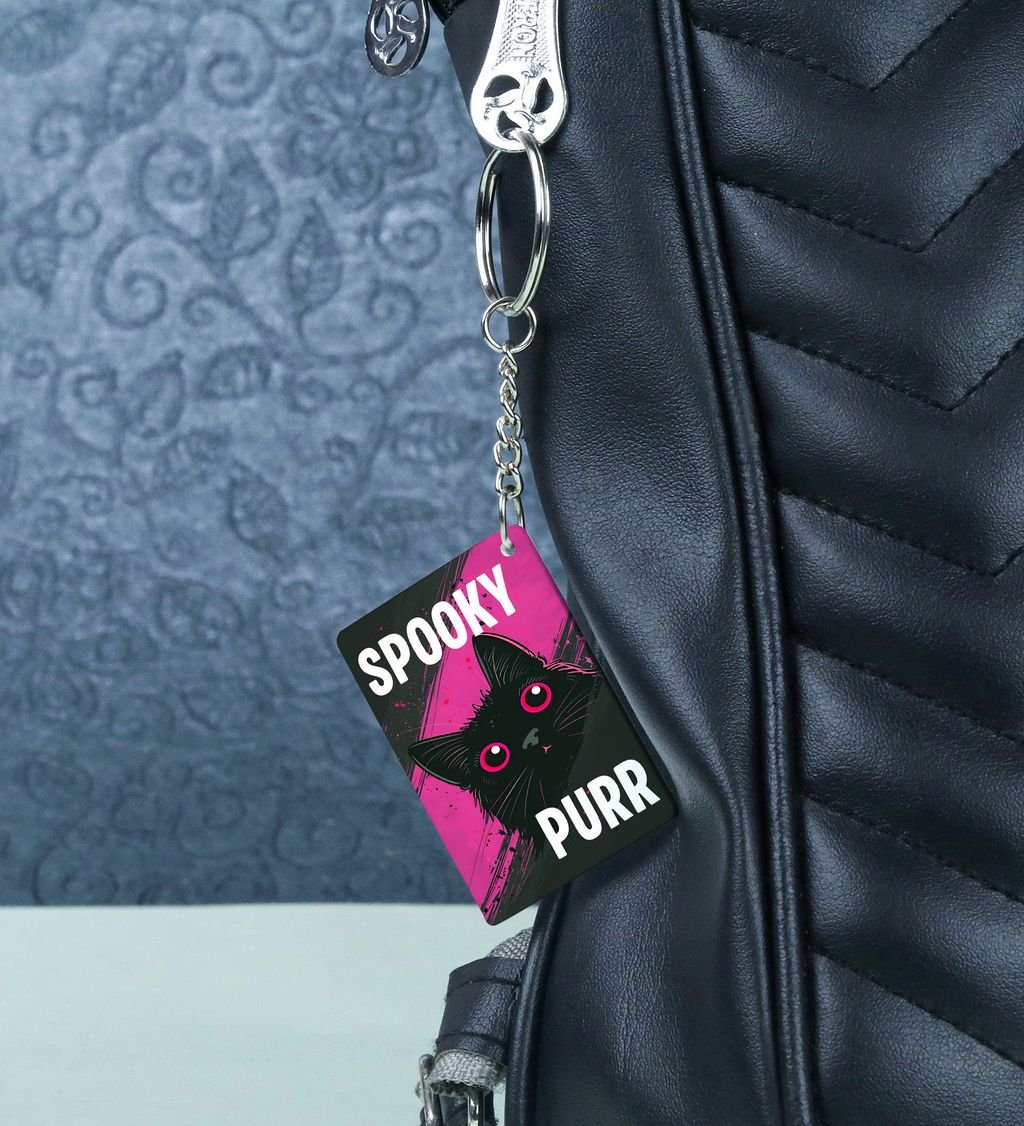 Pink Eyed Halloween Cat with Spooky Purr Printed Keychain Pack of 2