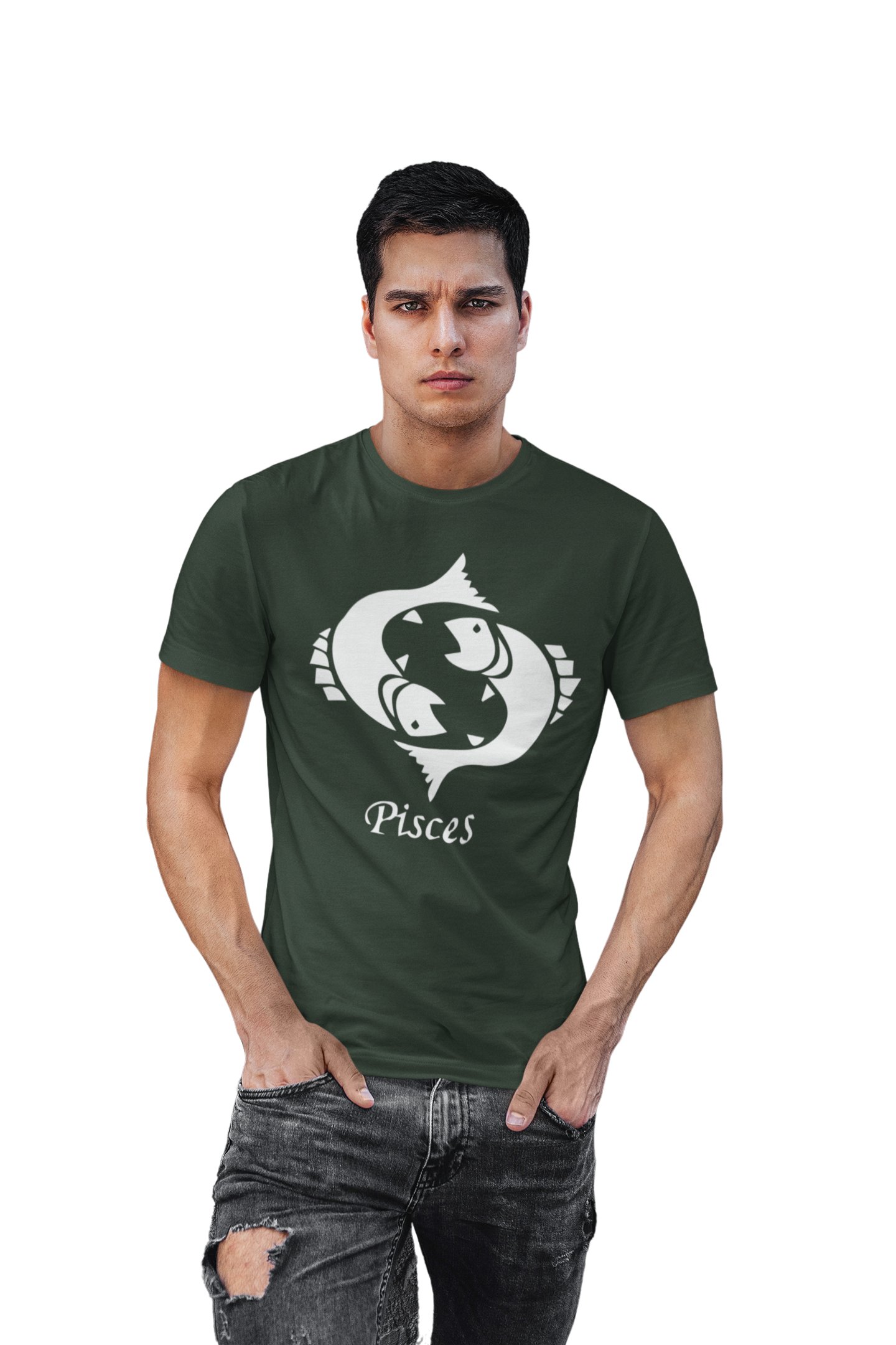 Pisces (BG White) (Green T) - Printed Zodiac Sign Tshirts - Made especially for astrology lovers people