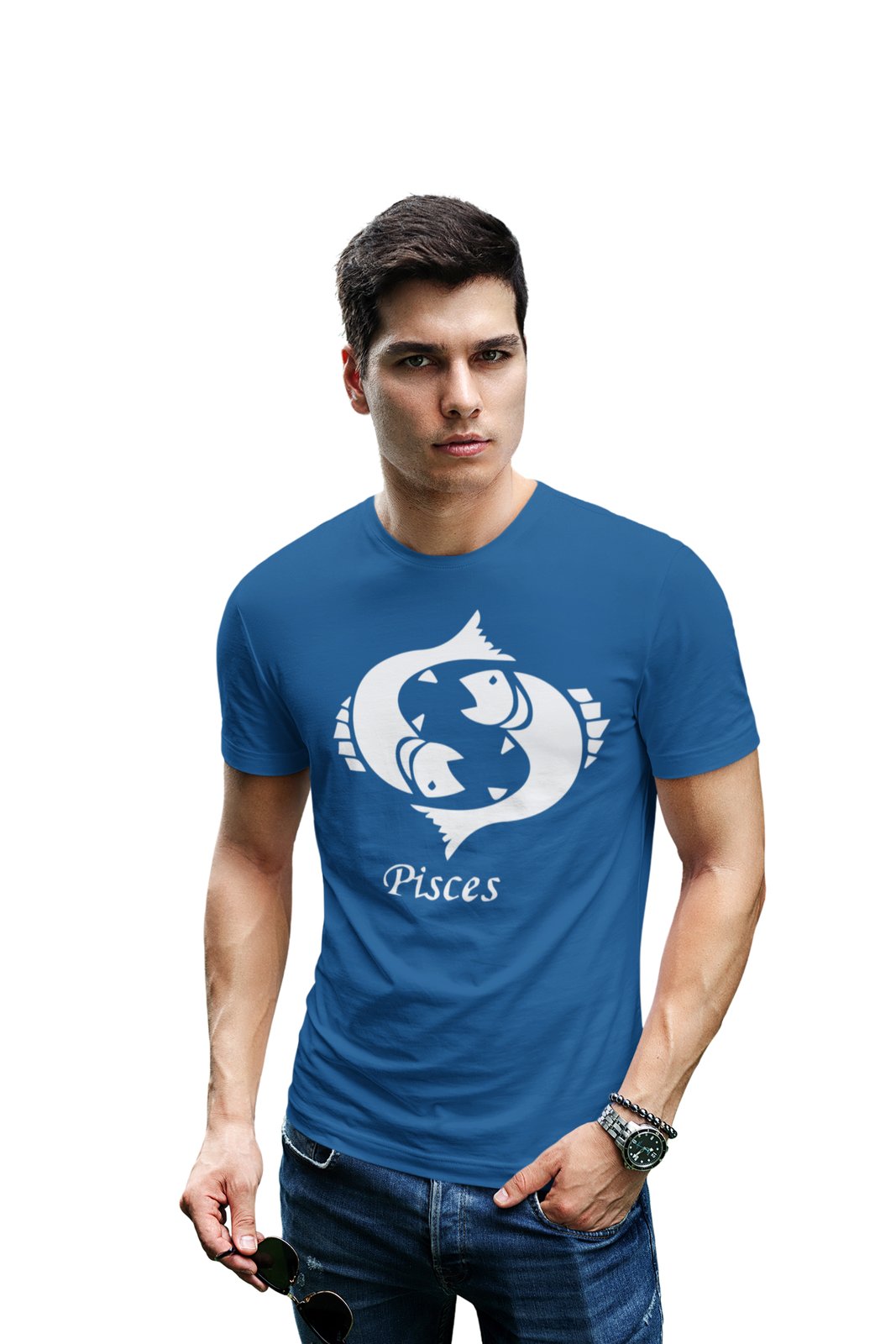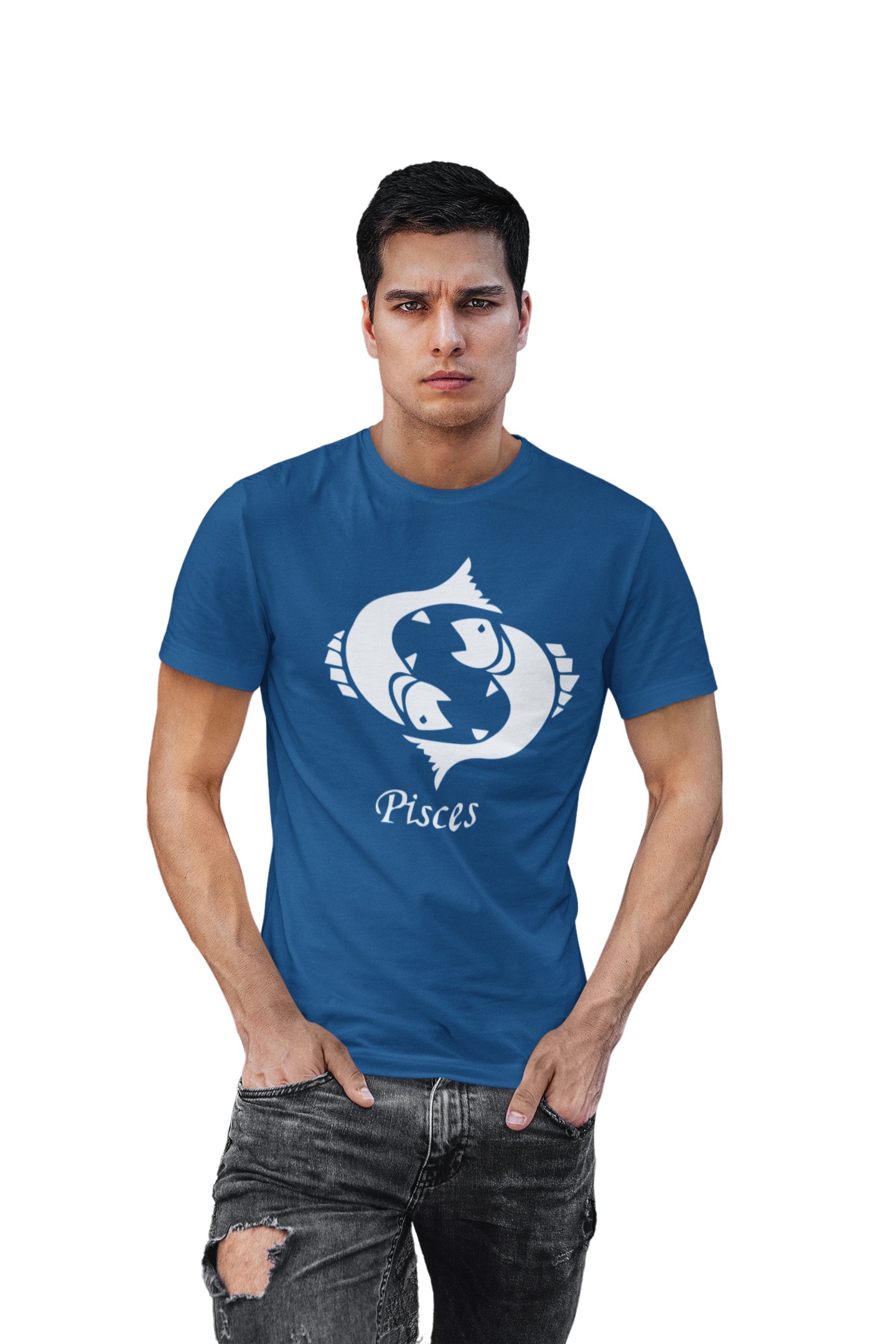 Pisces (BG White)(Blue T) - Printed Zodiac Sign Tshirts - Made especially for astrology lovers people