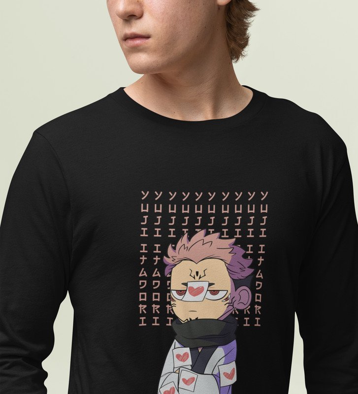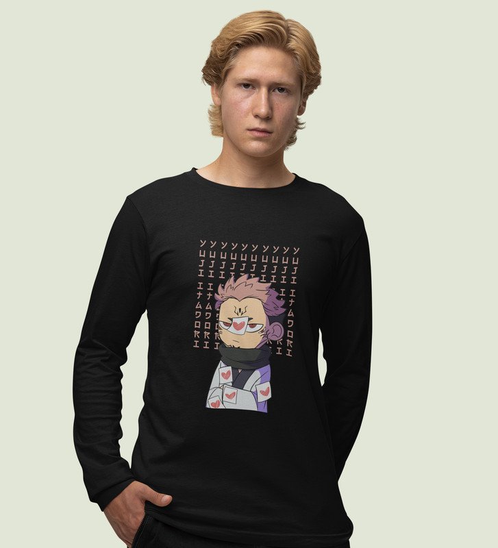 Pissed Itadori Cotton Black Full Sleeves Tshirt For Mens and Boys