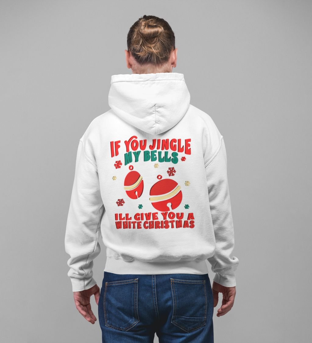 Playful Jingle Bells Capturing the Delight of a White Christmas Printed White Cotton Hoodie