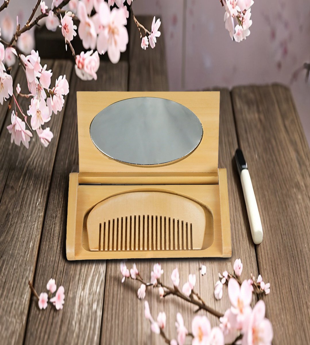 Pocket miniature mirror vintage product for ladies with a wooden comb to use for makeup. It is used specially by ladies and girls or man can also use. It can be used to keep in purse / wallets and pockets. It can be take along with them, while travelling in bus, train, car etc. It is light weight and very easy to carry anywhere. Gifting material for girls, mothers, female friends and dear ones. What can be a better gift than an unique wooden pocket mirror for your loved ones? Grab it now. Gifting material for girls, mothers, female friends and dear ones. All Occasion Gift.