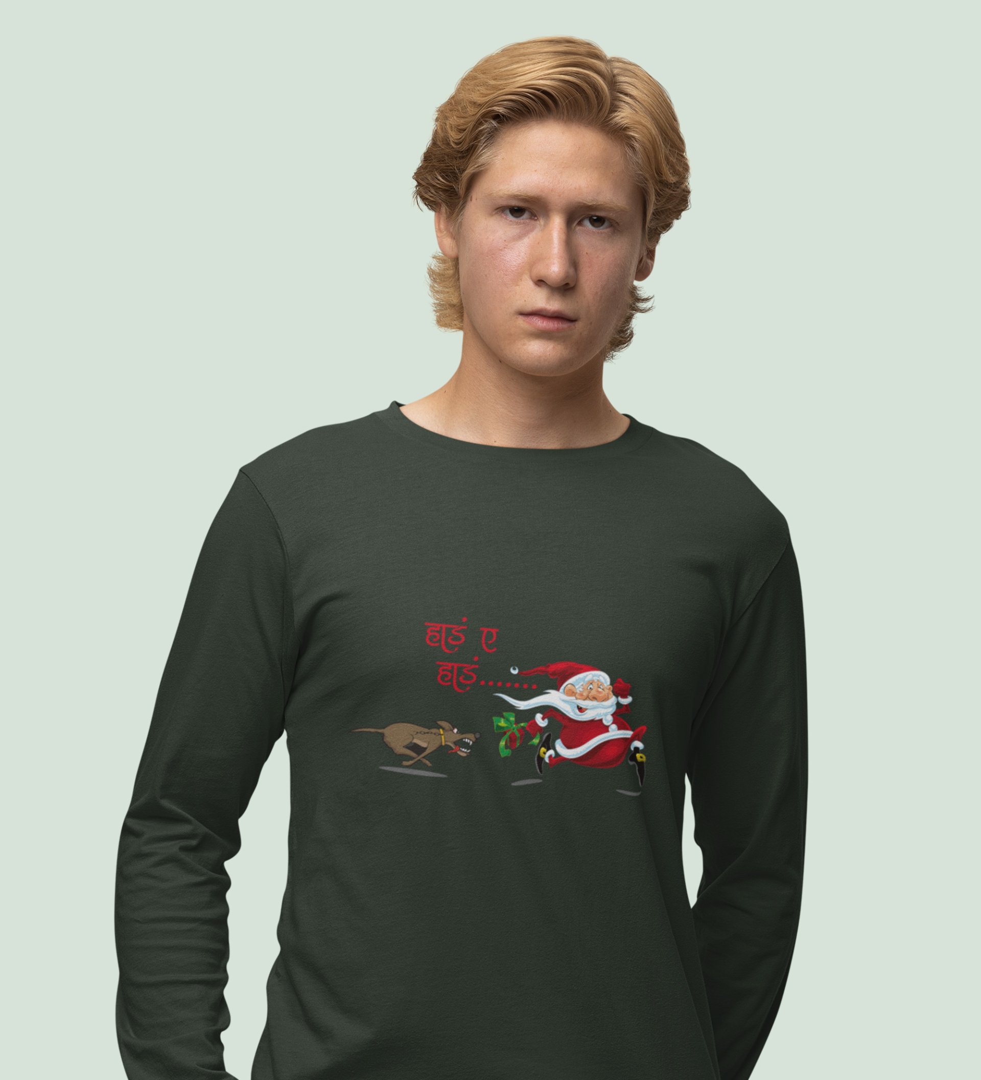 Poor Santa: Cute DesignerFull Sleeve T-shirte Green Best Gift For Boys Girls