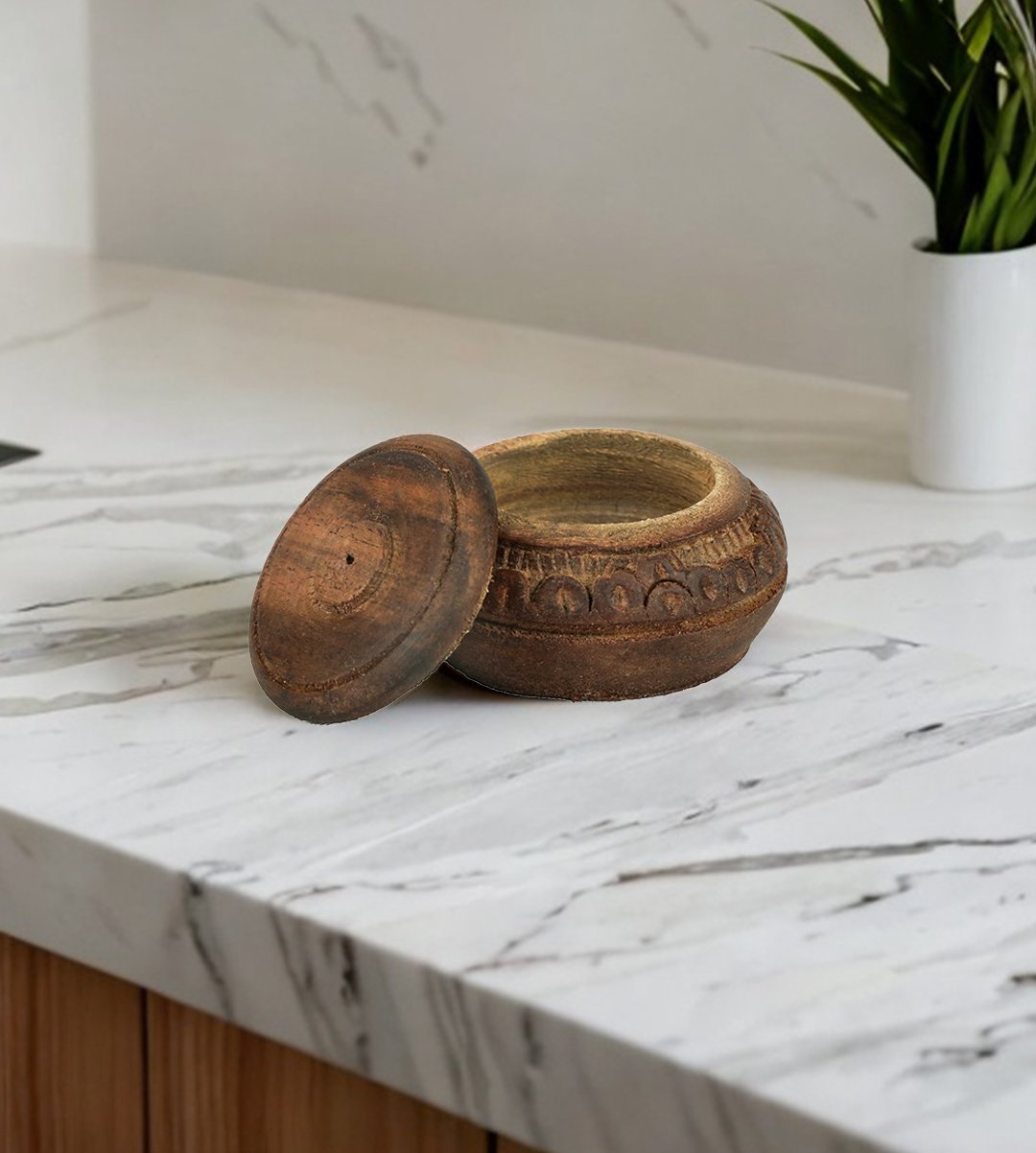 Wooden pot shaped sindoor dani is used to keep sindoor in it. Mostly used in pooja ghar also. You can also keep chandan powder, precious stones, herbs, saffron etc. It has a set of 2. It has smooth, clean and round surface. It adds a touch of class to your dressing table. We have brought you this sindoor dani to choose from. Gifting material to hindu and sikh womens. Grab it now.