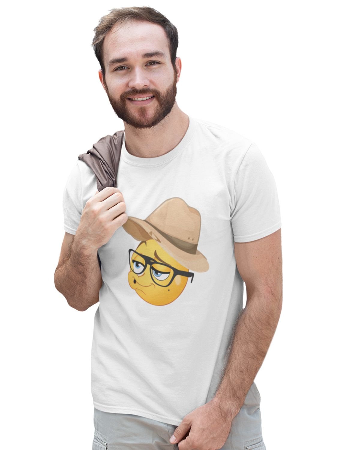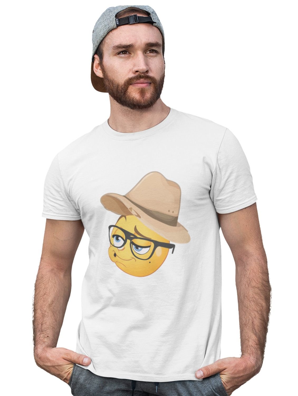 Pouting Emoji with Hat Printed T-shirt (White) - Clothes for Emoji Lovers -Foremost Gifting Material for Your Friends and Close Ones