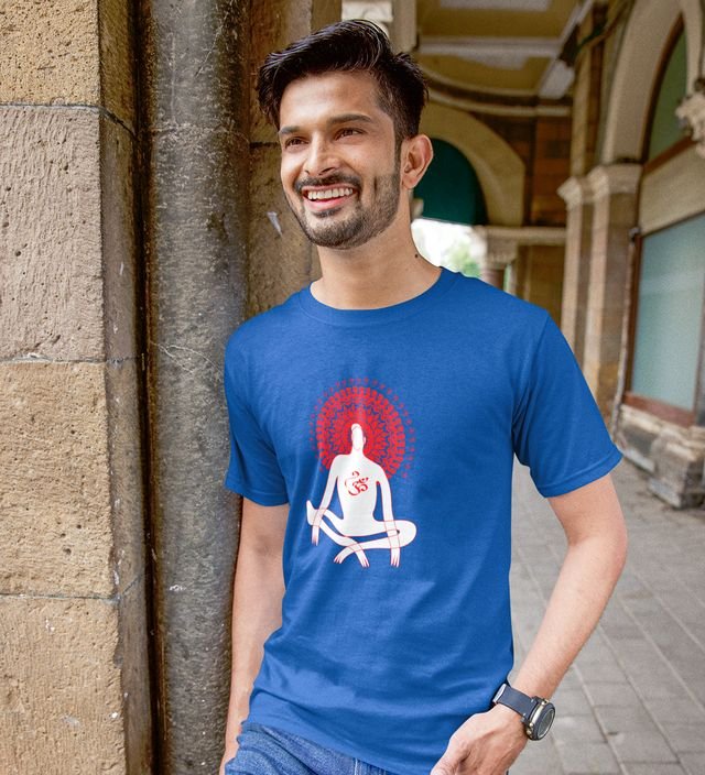 Power Of Om Blue Round Neck Cotton Half Sleeved Men T-Shirt with Printed Graphics