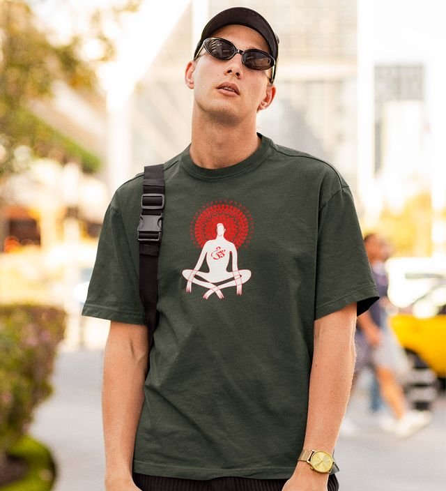 Power Of Om Green Round Neck Cotton Half Sleeved Men T-Shirt with Printed Graphics