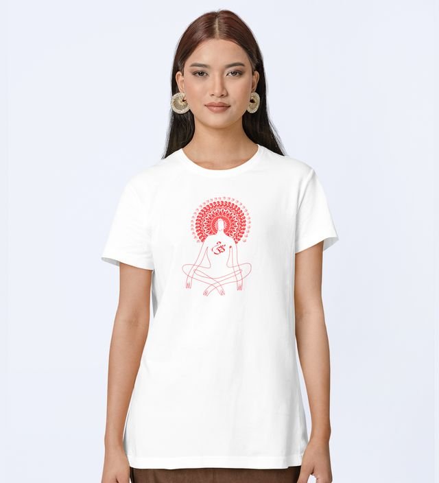 Power Of Om White Round Neck Cotton Half Sleeved Women T-Shirt with Printed Graphics