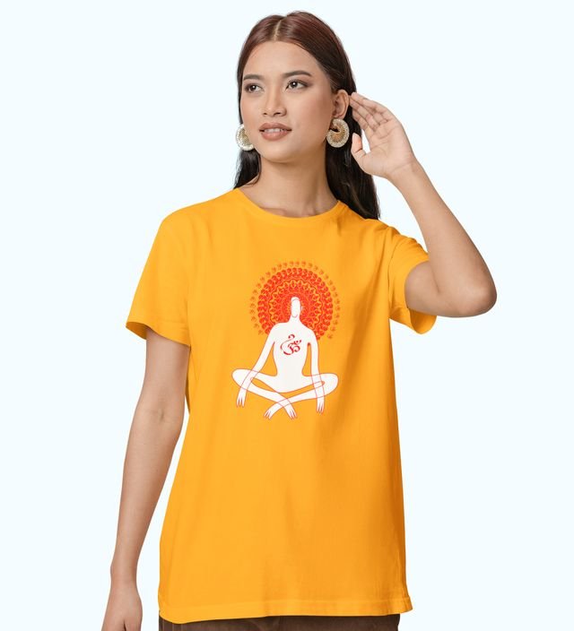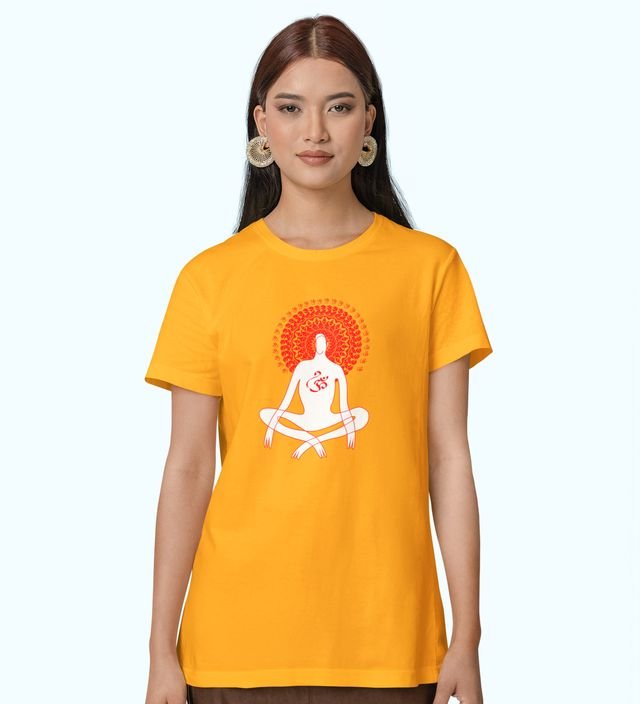 Power Of Om Yellow Round Neck Cotton Half Sleeved Women T-Shirt with Printed Graphics