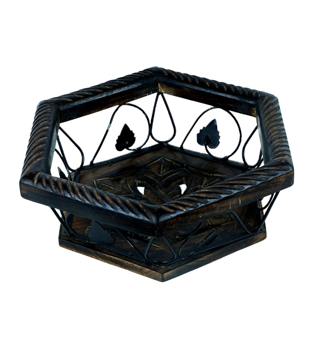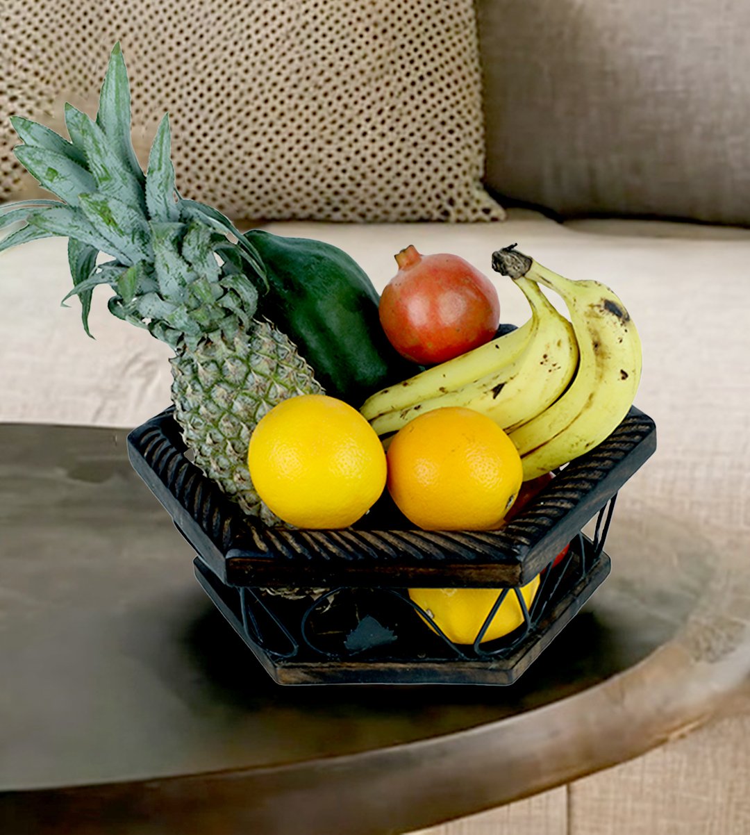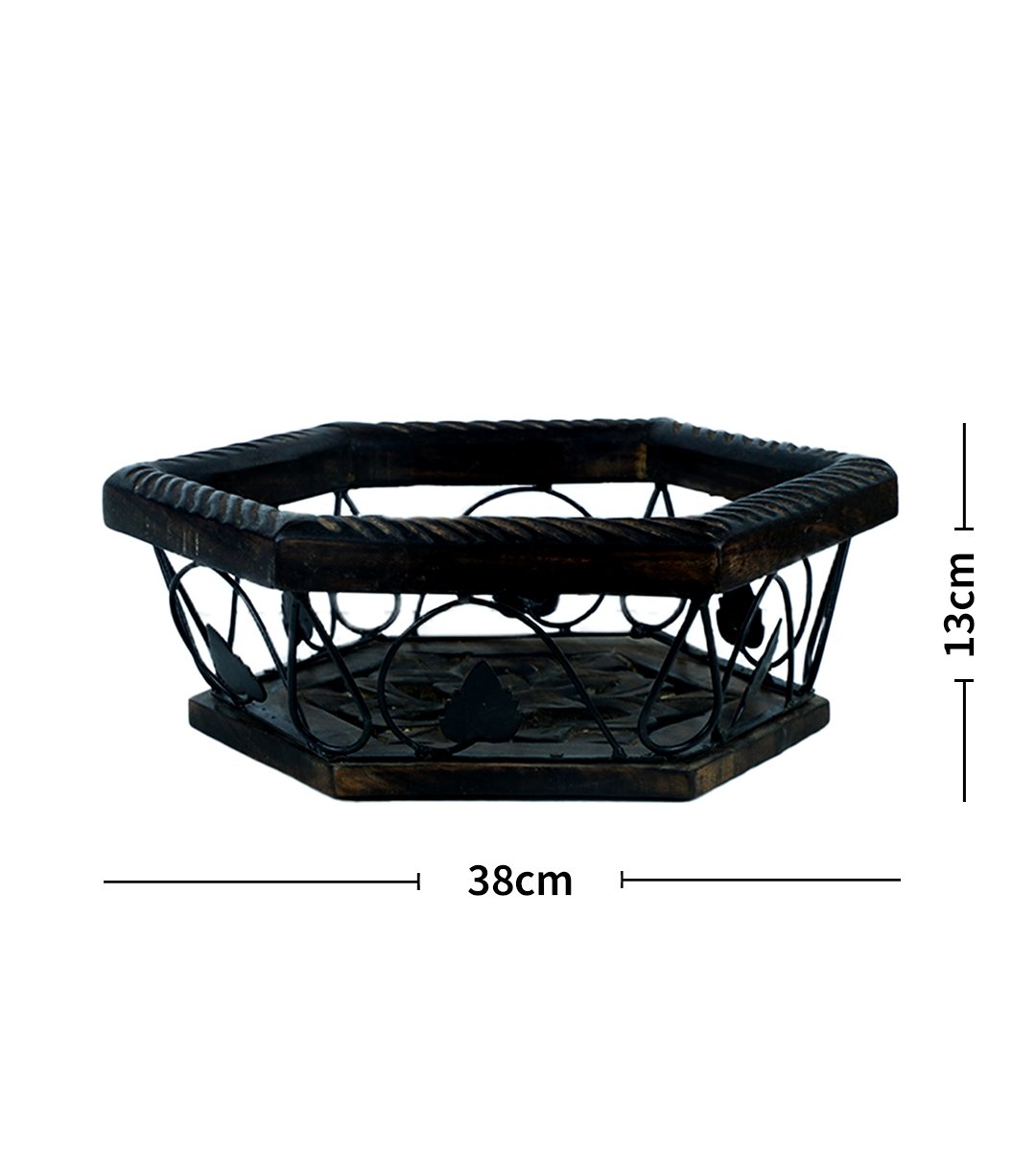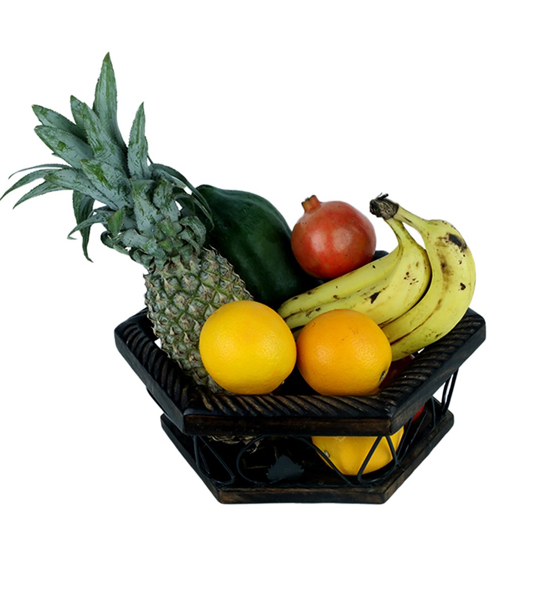 The quadrilateral six-sided wooden and wrought iron fruit and vegetable basket, fruit vessel, or a fruit container is used to keep both fruits and vegetables in it. The product is made up from wrought iron and wood. The designs enhancing the product into a classified one. It has best finishing. It is used to keep in dining table and center table. You must have your favourite one. Easy to carry and its patterns are eye-catchy. We have brought you many fruit and vegetable containers to choose from. You can gift it to your family, relatives, friends, siblings. Also it can be gifted in birthdays, marriages, anniversaries, house warming parties, chirstmas parties etc. Grab it as soon as possible.