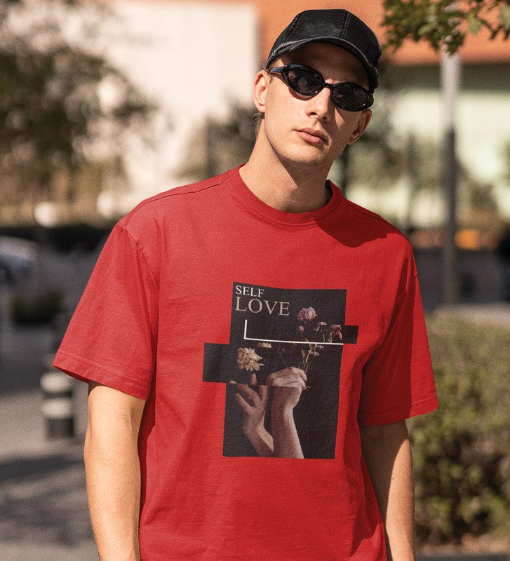 Pride, City Chic: Explore Fashion with Red Oversized Round Neck T-Shirt for Men