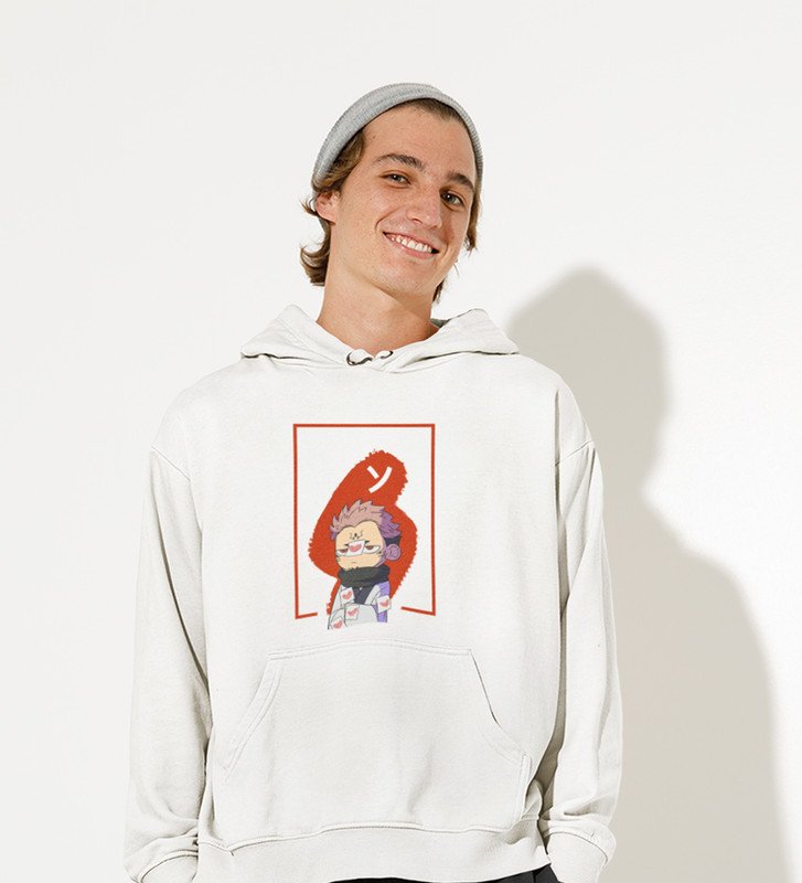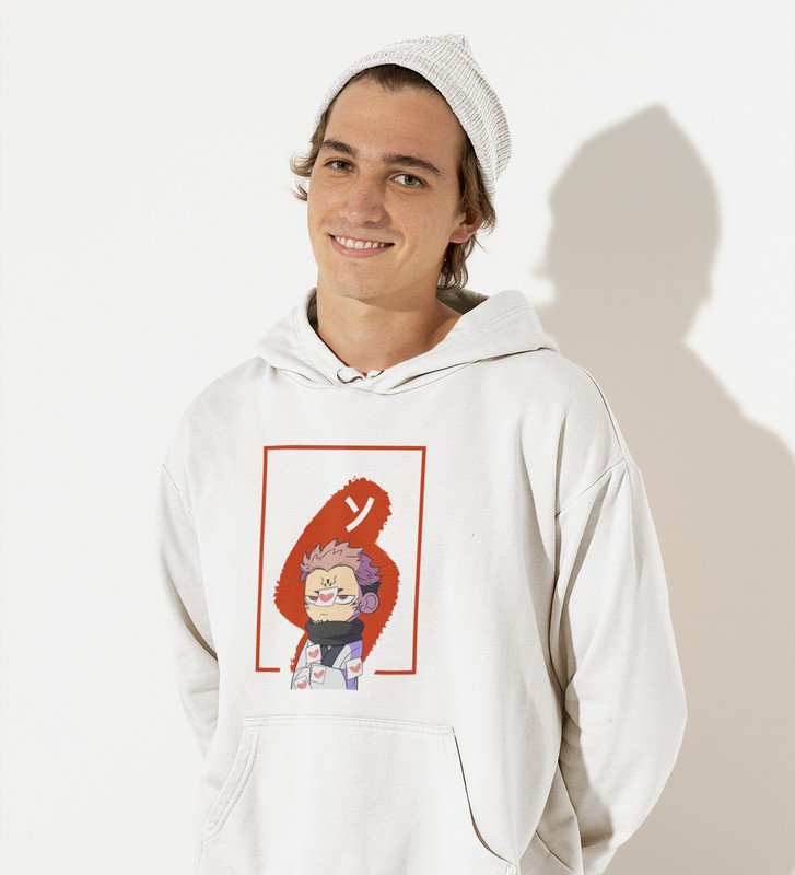 Printed Itadori Anime Cotton White Hoodies For Mens and Boys