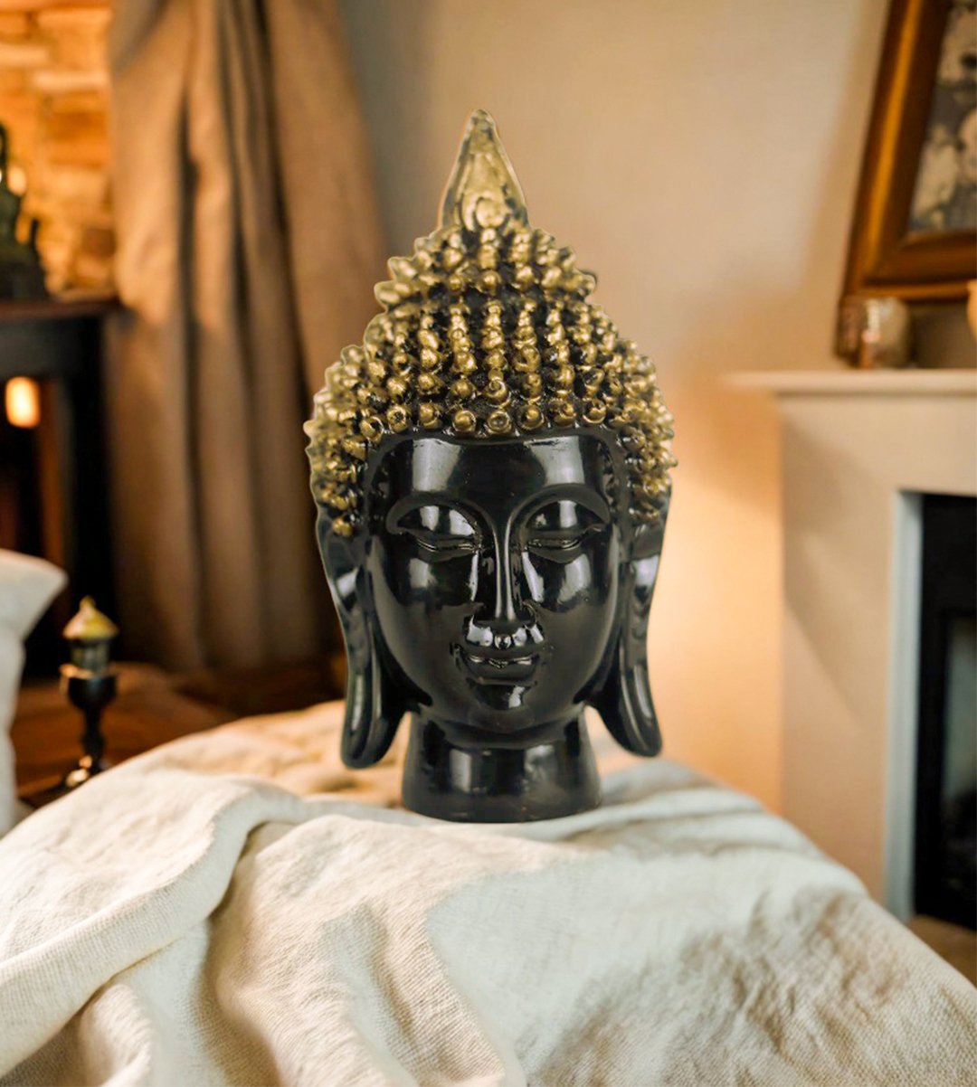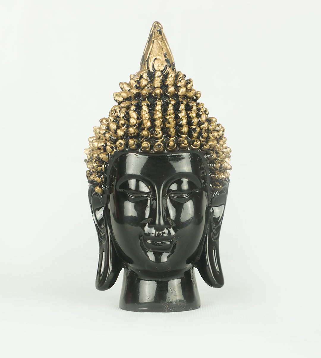Buddha head polyster resin black shining showpiece with golden top for home and office decor
