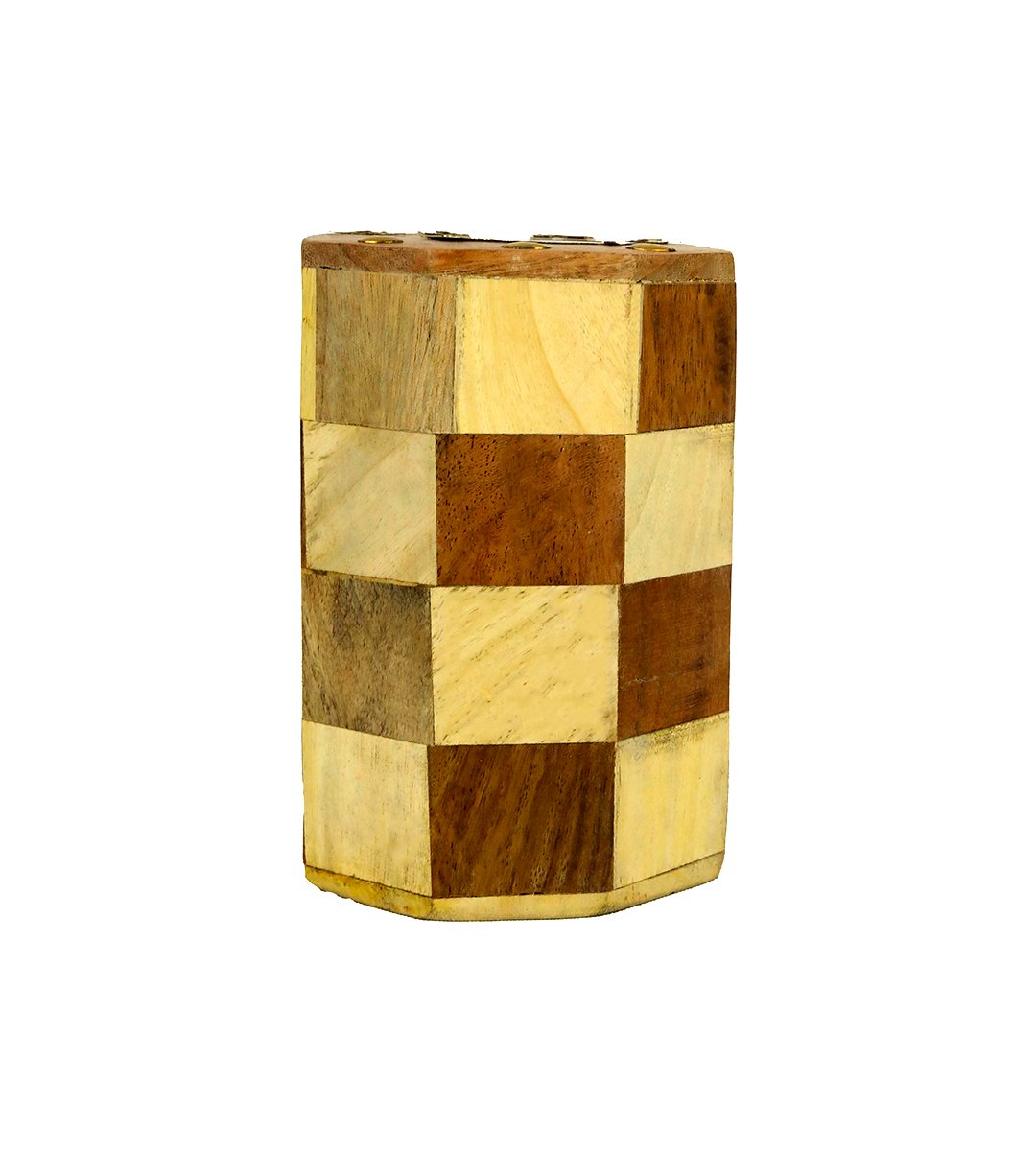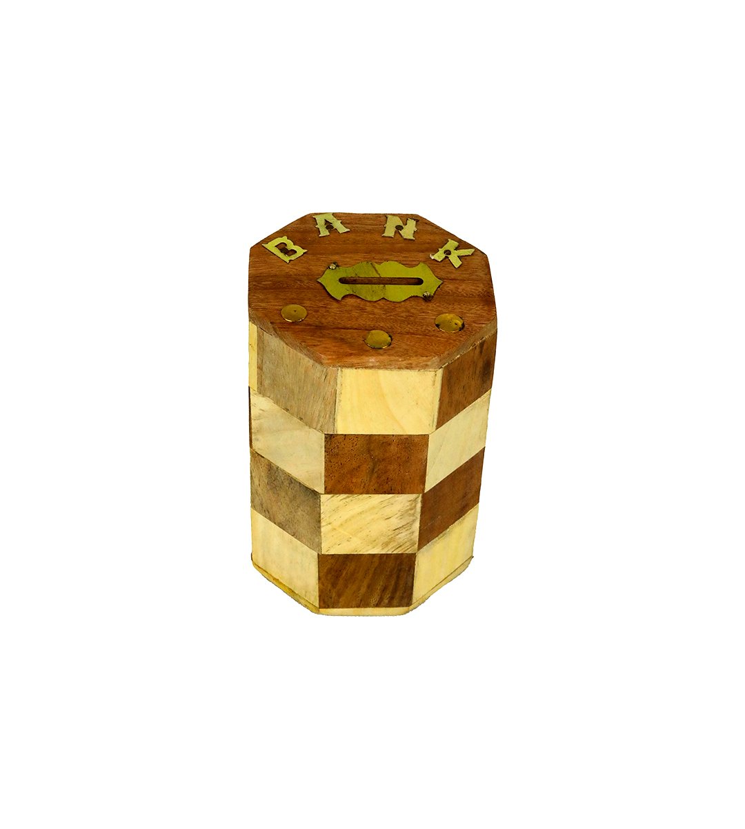 Handcrafted cylindrical wooden honey comb striped money bank/ gullak /coin storage bank for kids with coin slot