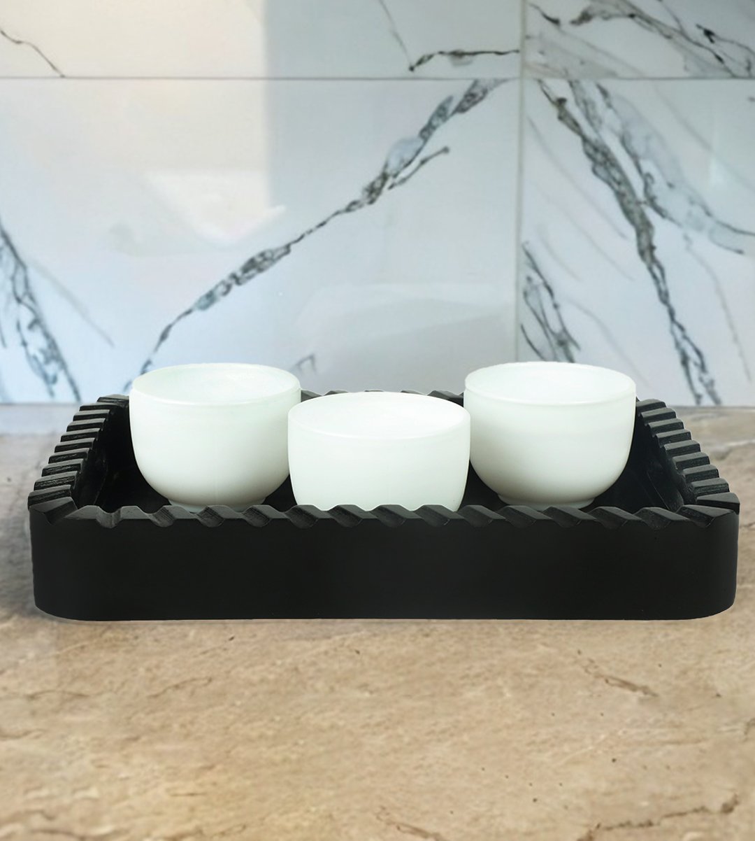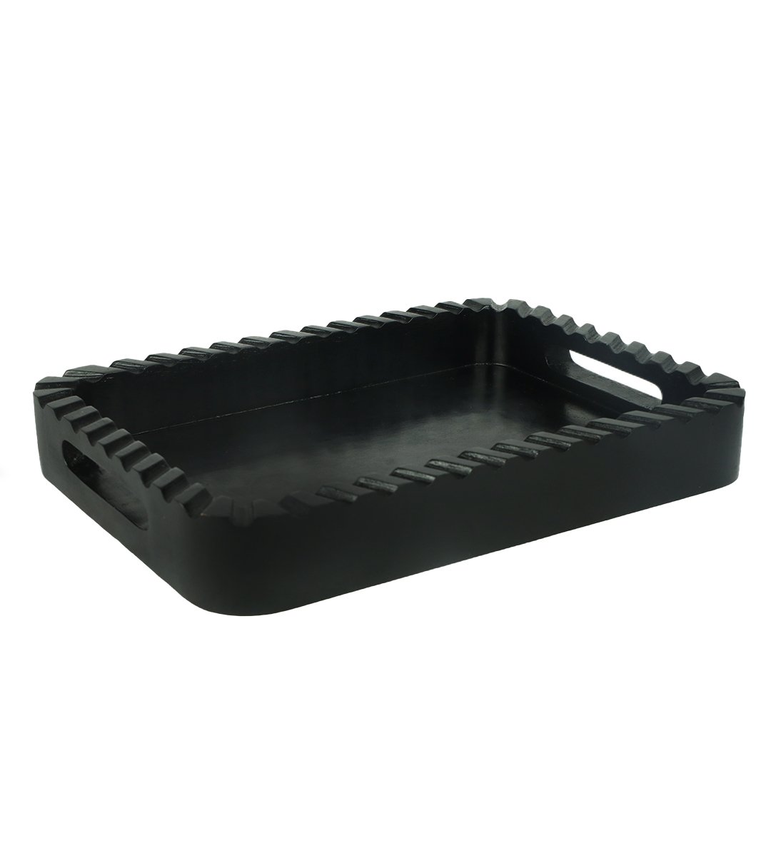 Black striped bars wooden rectangular serving tray/ platter/ tea serving plate for serving tea or coffee