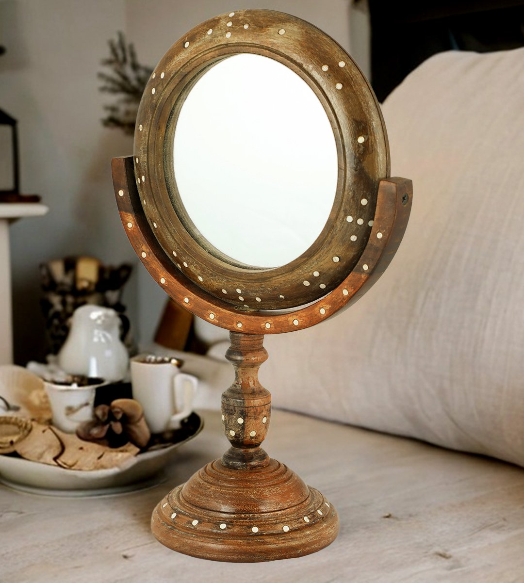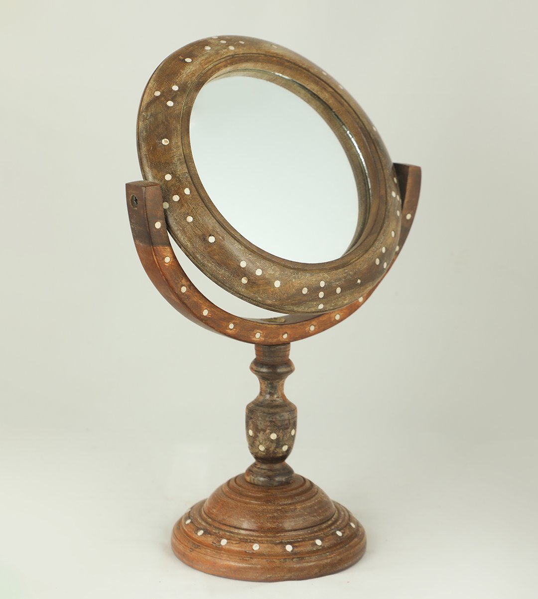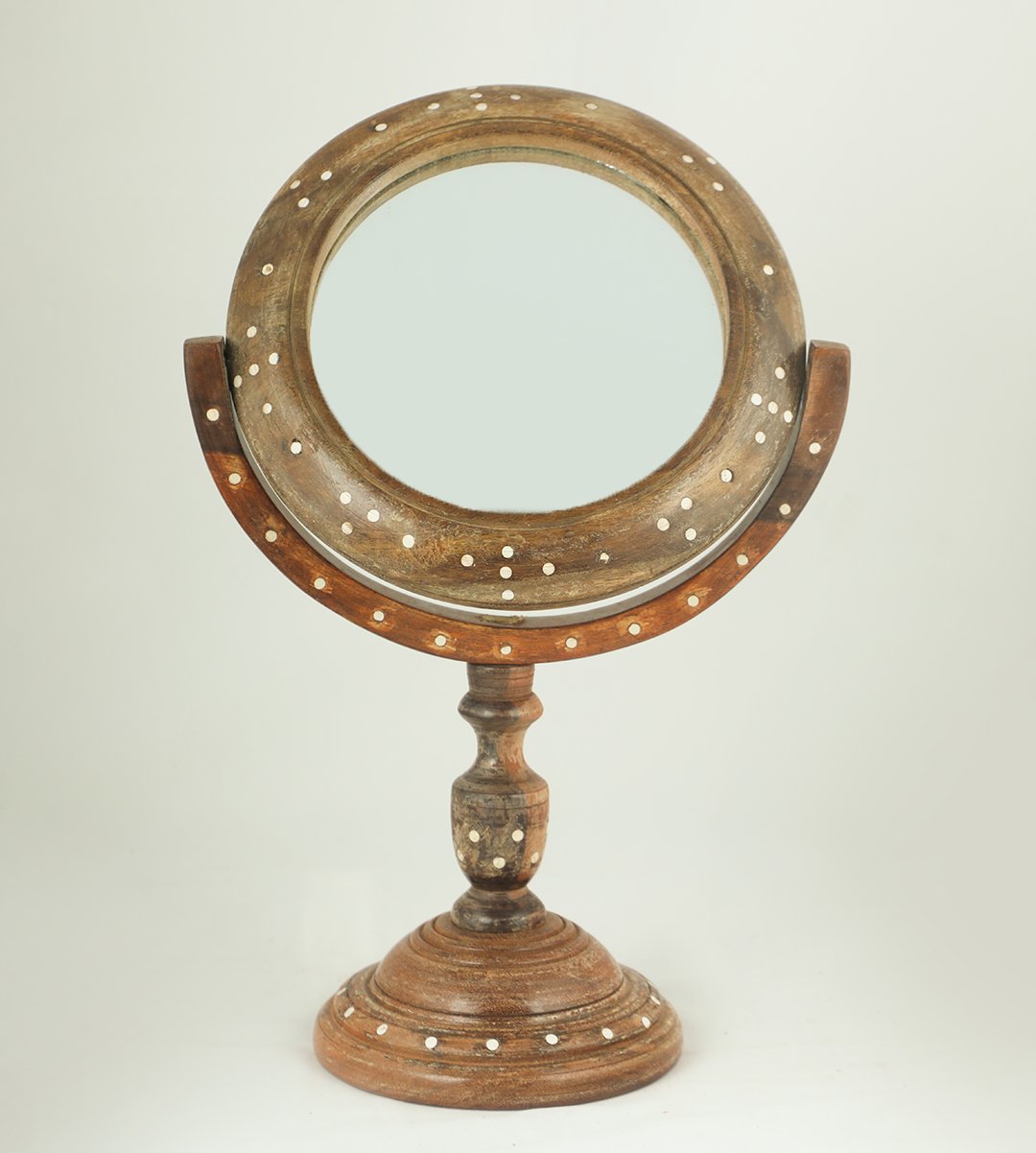 Wooden mirror stand is used to see ourself. Worthy vintage mirror stand made for women and man can also use is also used to decorate home. Made of pure wood. The original beauty enhances the vibes into a superior one. Everyone has their favourite one to choose from. We have brought you this mirror item. Its shape looks ancient glory. Gifting material to mothers, relatives, female friends and dear ones. Grab it now.