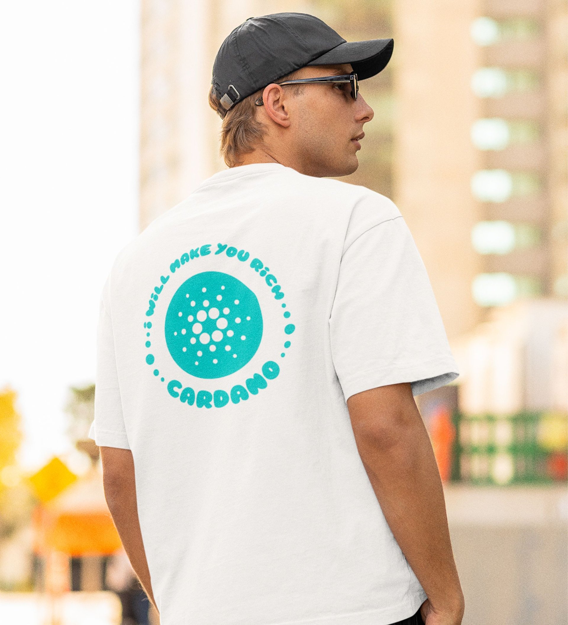 Promise Of Cardano Wings White Round Neck Cotton Half Sleeved Men's T Shirt with Printed Graphics