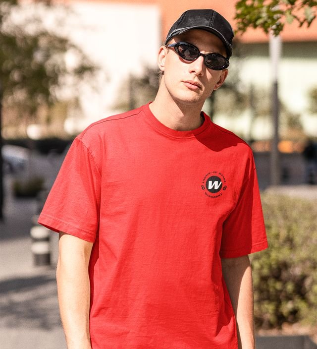 Proof Of StakeWings Red Round Neck Cotton Half Sleeved Men's T-Shirt with Printed Graphics