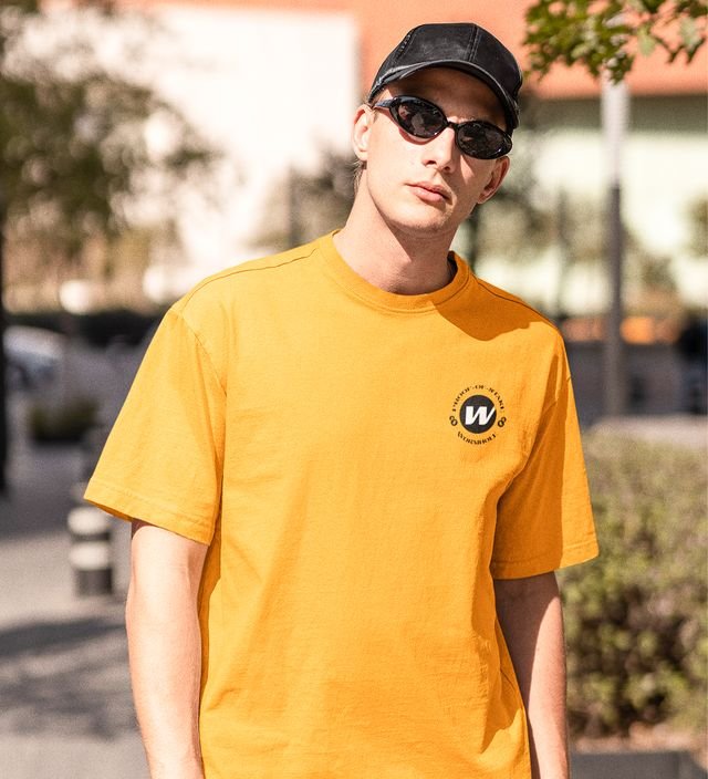 Proof Of StakeWings Yellow Round Neck Cotton Half Sleeved Men's T-Shirt with Printed Graphics