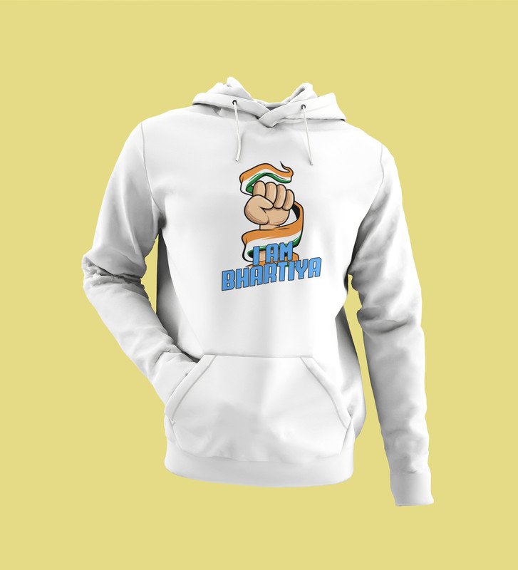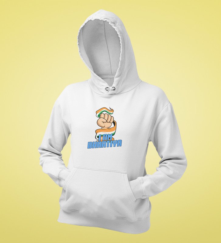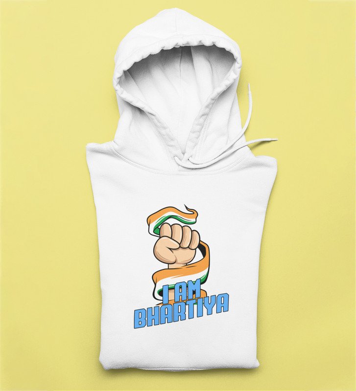 Proud Indian White Printed Hoodies For Mens Boys Round Neck Hoodies
