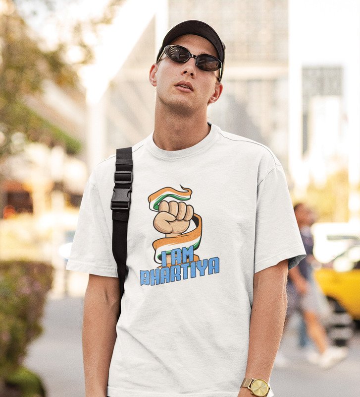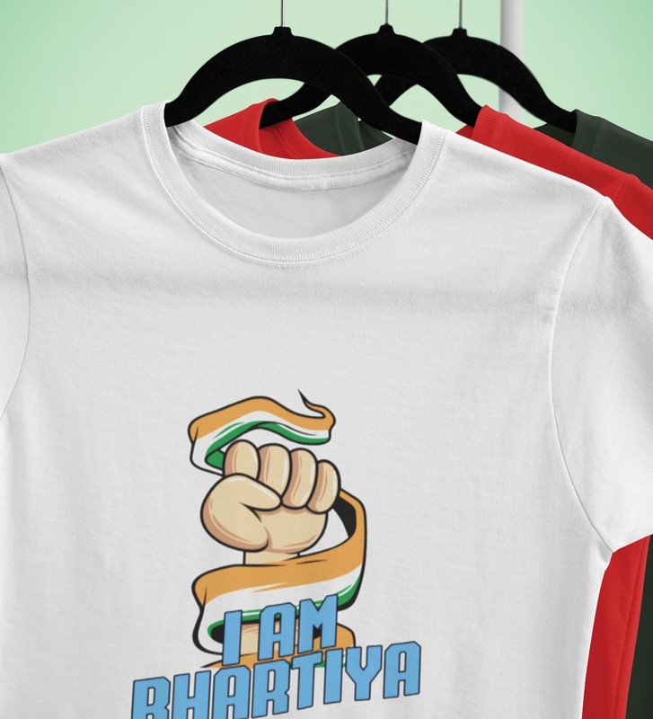 Proud Indian White Printed T-shirts For Mens Boys Round Neck T-shirt