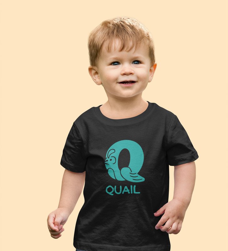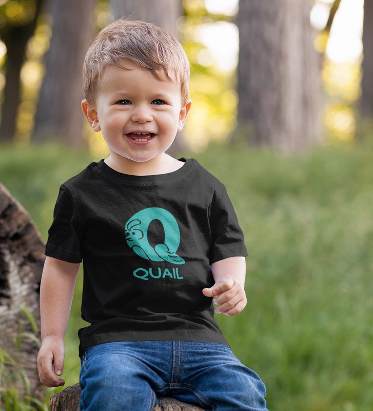Quacky Quail, Boys Round Neck Blended Cotton Tshirt (black)