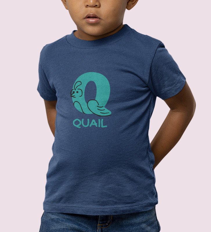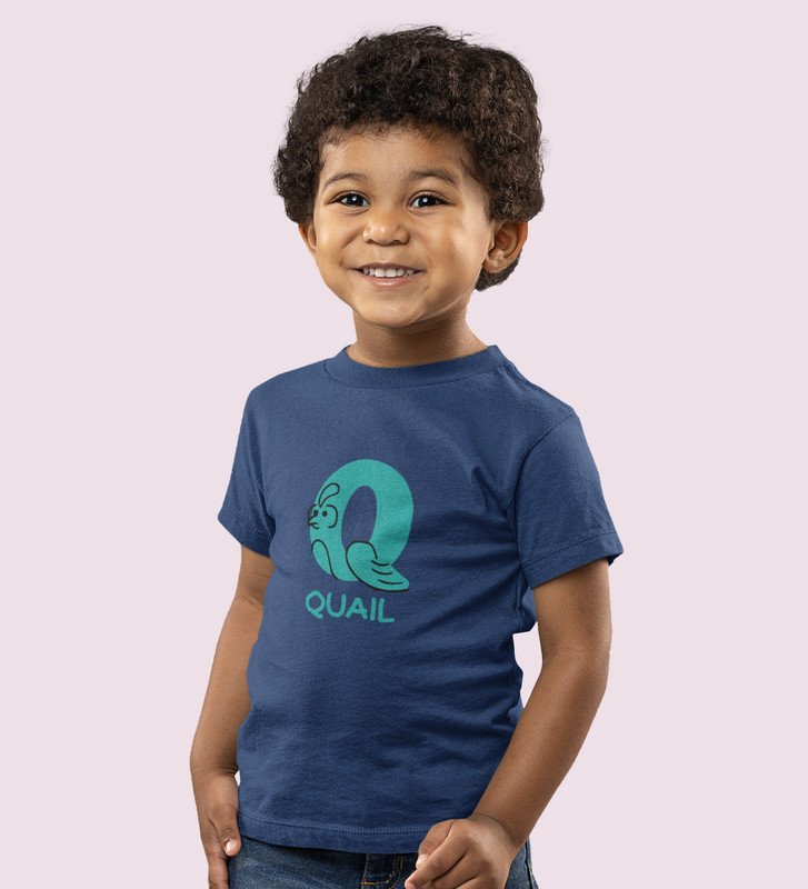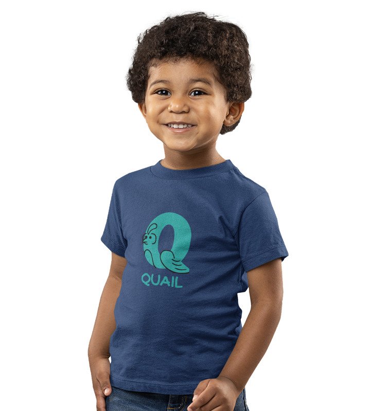 Quacky Quail, Boys Round Neck Blended Cotton Tshirt (Navy blue)