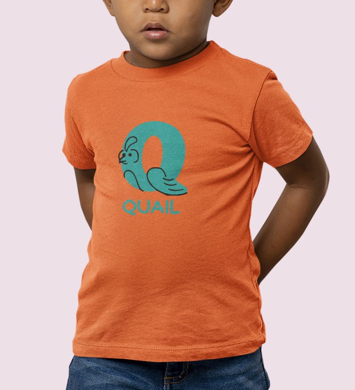 Quacky Quail, Boys Round Neck Blended Cotton Tshirt (Orange)