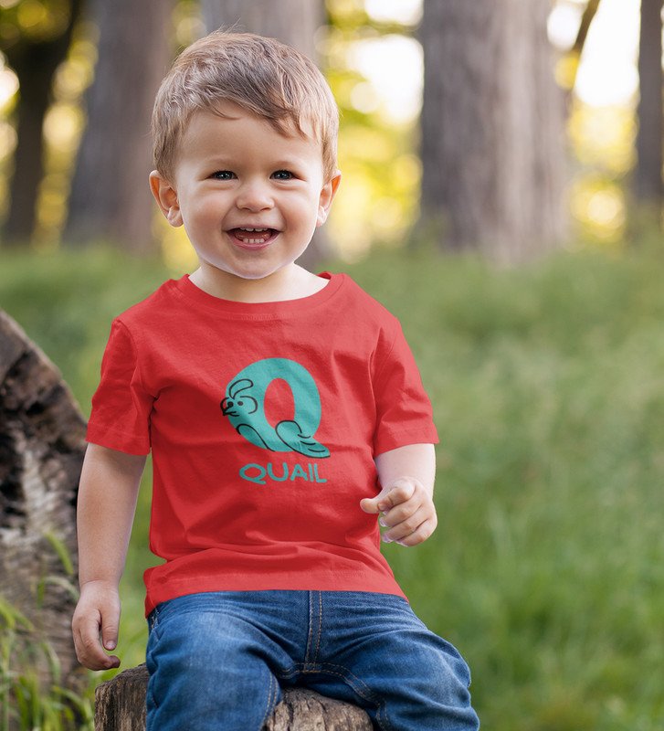 Quacky Quail, Boys Round Neck Blended Cotton tshirt (red)