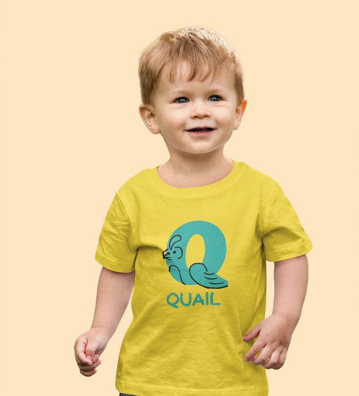 Quacky Quail, Boys Round Neck Blended Cotton tshirt (yellow)
