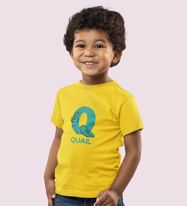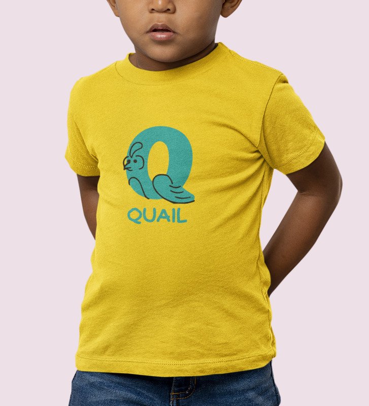 Quacky Quail, Boys Round Neck Blended Cotton Tshirt (Yellow)