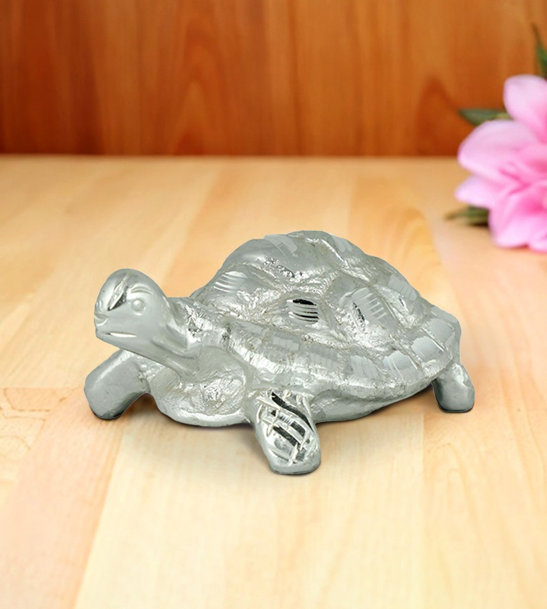 The tortoise is made up of special metal alloy which makes them very sturdy and durable. They are light weight and can be kept anywhere. Add an element of beauty to your home decor. It can also be an ideal addition to your living room, guest room, drawing room. It enhance the decor value of the temple, house, office, hotel, restaurent etc. It brings peace & happiness among the home members. It is very appealing and eye catching as a home decor item. It is used to keep in home's showpiece keeper, car's dashboard, receptionist's table etc It could be a memorable gift to your wedding, house warming, anniversary or festive occasions, it can be a memorable return gift.What can be a better gift than a handcrafted antique metal statue for your loved ones? Gift it to yourself or Friend, Spouse, Mother, Father, Grand Parents. Beautifully handcrafted and ornamented tortoise showpiece / statue, glows with silver glitters. Keep this statue at your home and office for decoration. It's also a perfect gift for the people who loves to decorate their home.