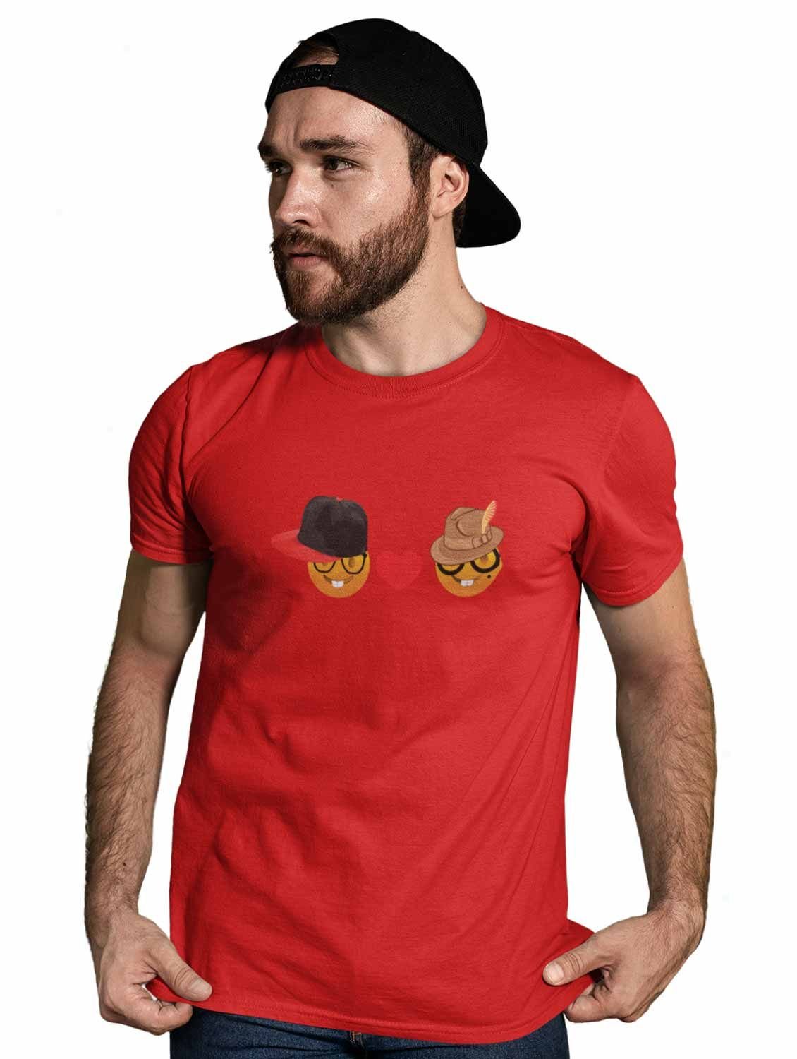 Rabbit-teeth Couple Emoji T-shirt (Red) - Clothes for Emoji Lovers - Foremost Gifting Material for Your Friends and Close Ones