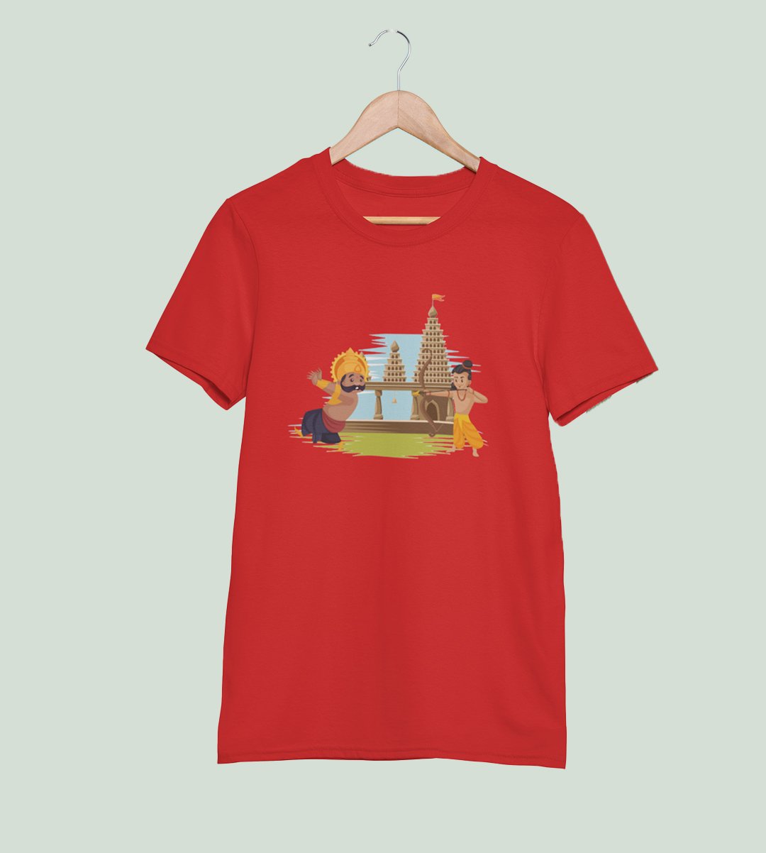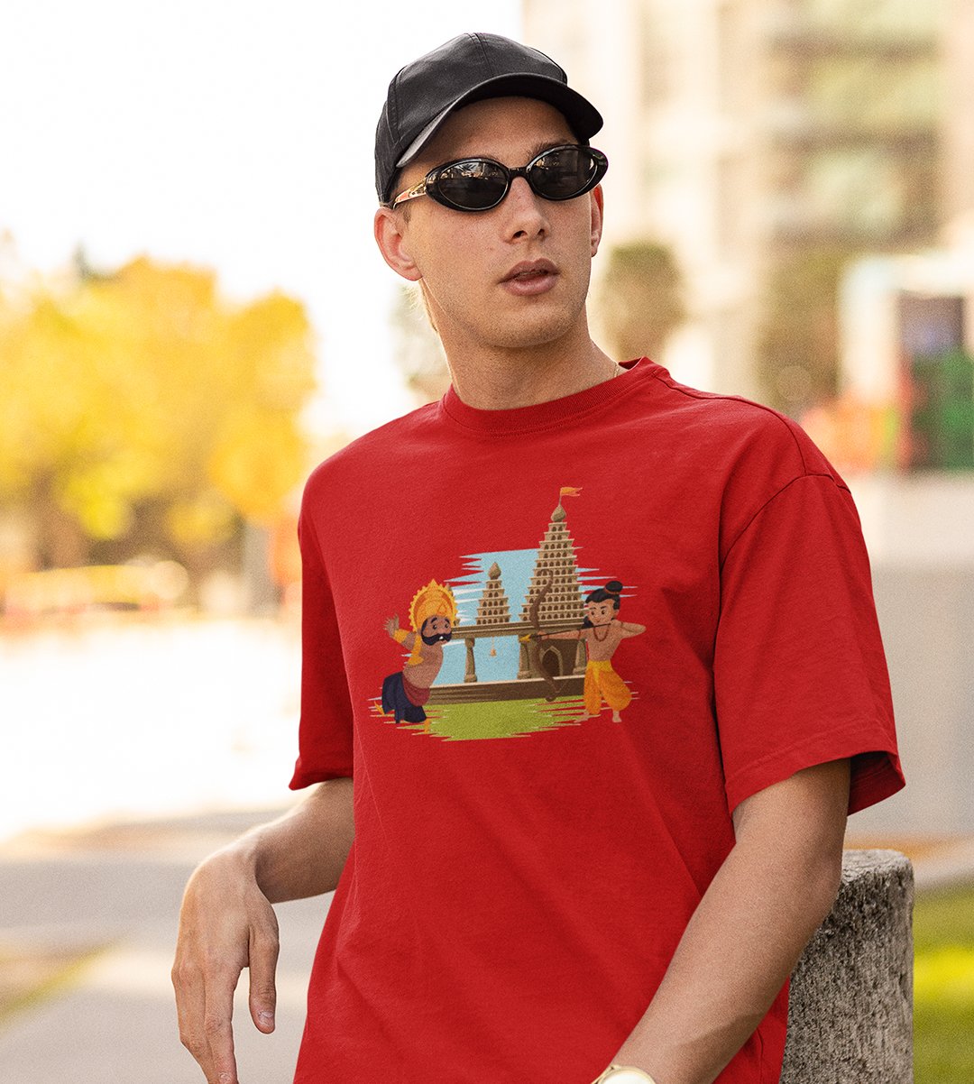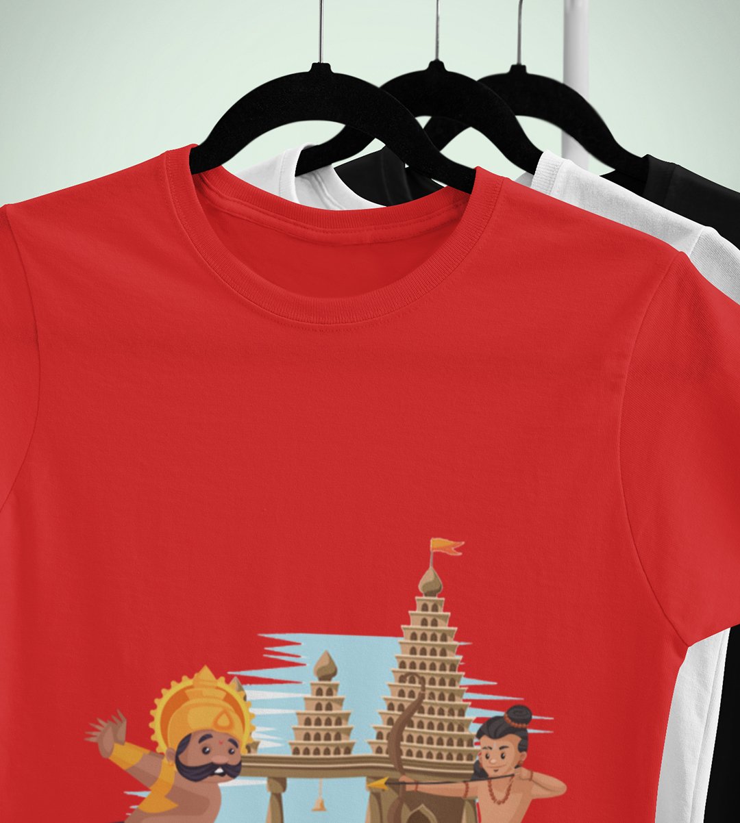 Ram and Ravan printed unisex adults round neck cotton half-sleeve red tshirt specially for Navratri festival/ Durga puja