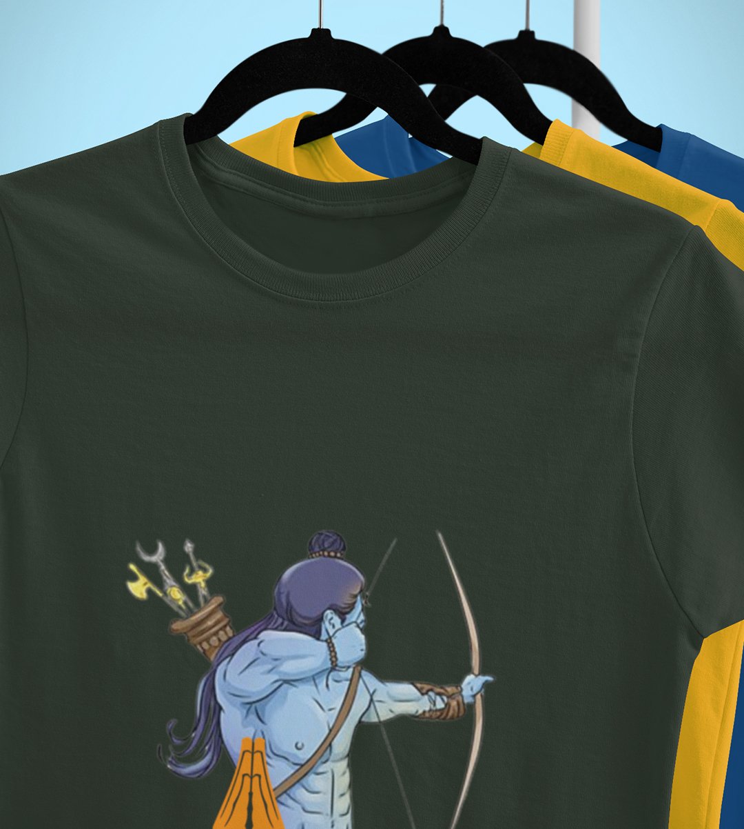 Ram animated printed unisex adults round neck cotton half-sleeve green tshirt specially for Navratri festival/ Durga puja