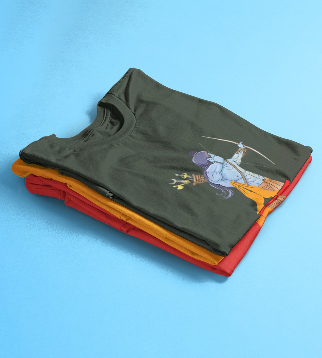Navratri is a very auspicious festival for hindus. It takes place at the beginning of October and sometimes September. Enjoy the 9 days of festivities with full zeal and make yourself submerged in the love of Maa Durga. Navratri is also known as Durga Puja. And with this Tees, you can shine like a star during this festive season with our navratri themed cotton half sleeved Tshirts. You can pair our t-shirts with trousers and denim of your choice and make it a weekday smart casual or weekend wear. This is durable. This tshirt is smooth and soft which makes you comfortable to wear during all seasons. The printing in it is durable and odourless. It has five sizes, S,M,L,XL,XXL. The Tshirt colour is intact even after repeated washes. It can be kept in your wardrobe and hangers. Please avoid washing mashine to clean this Tee, it may affect the print. Hand wash only. We have brought you many navratri related designs printed on our different colour Tshirts to choose from. Grab it now.