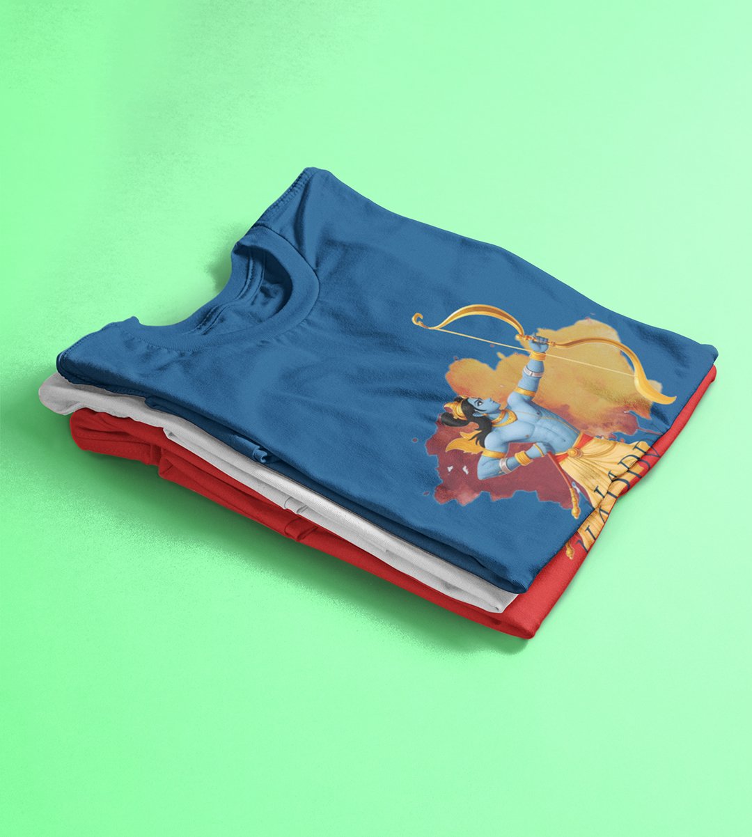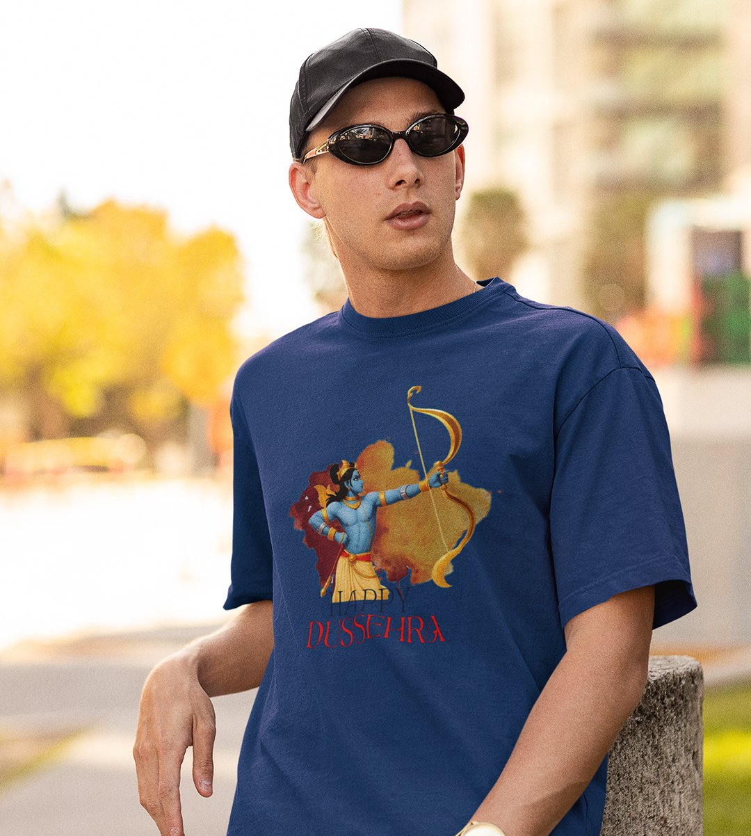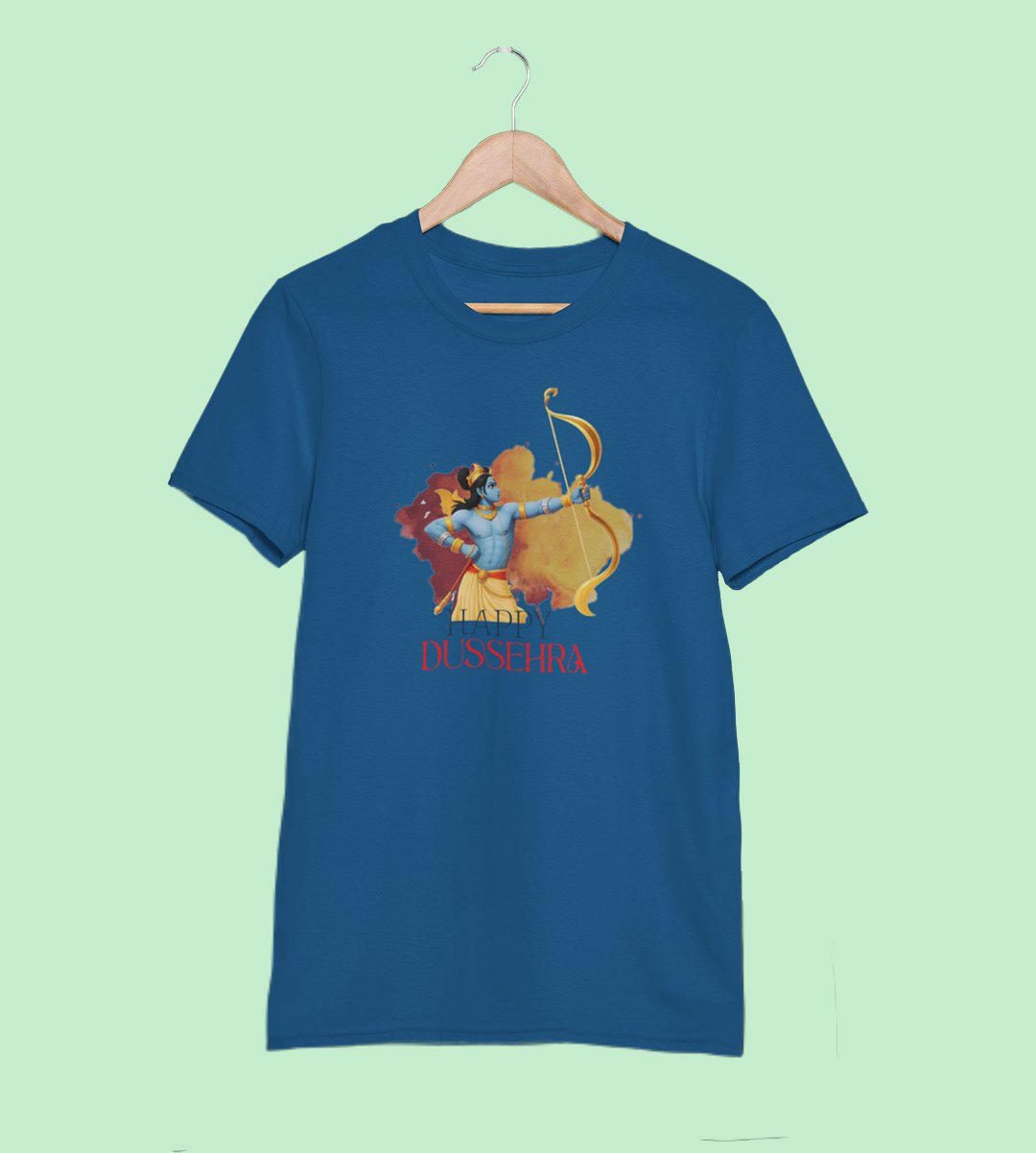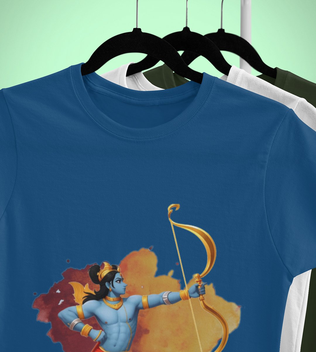 Ram (crossbow) animated printed unisex adults round neck cotton half-sleeve blue tshirt specially for Navratri festival/ Durga puja